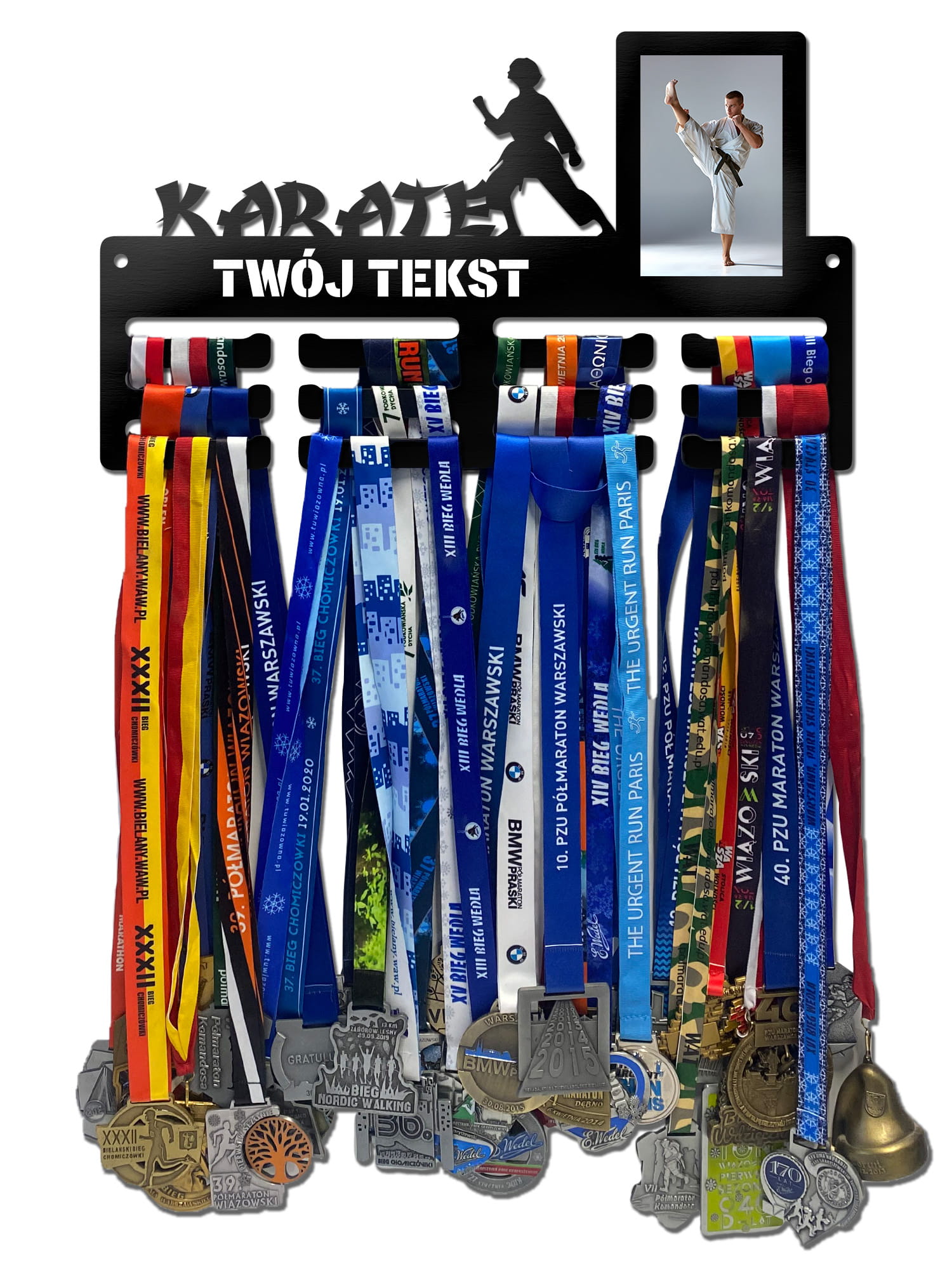 Wieszak na medale KARATE WOMAN ramka na zdjęcie twoje imię dowolny tekst 403.3