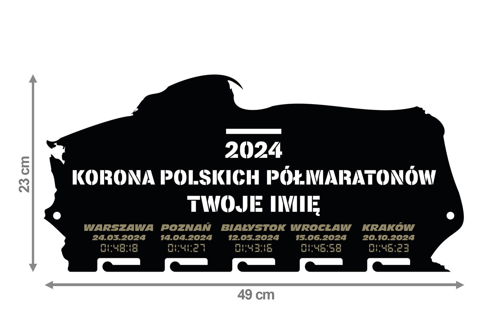 Wieszak na medale KORONA PÓŁMARATONÓW twoje imię dowolny tekst 301.1