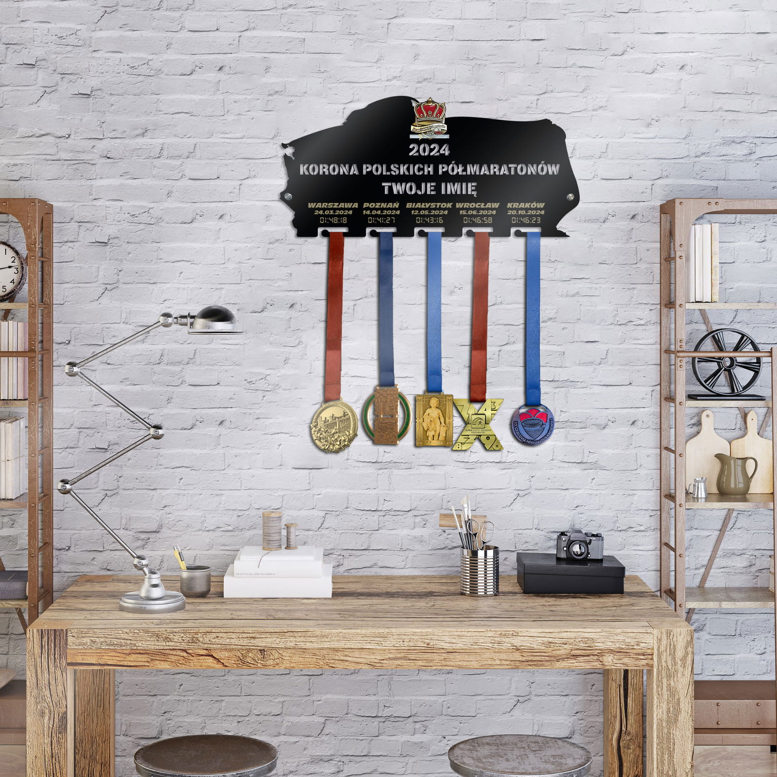 Wieszak na medale KORONA PÓŁMARATONÓW twoje imię dowolny tekst 301.3