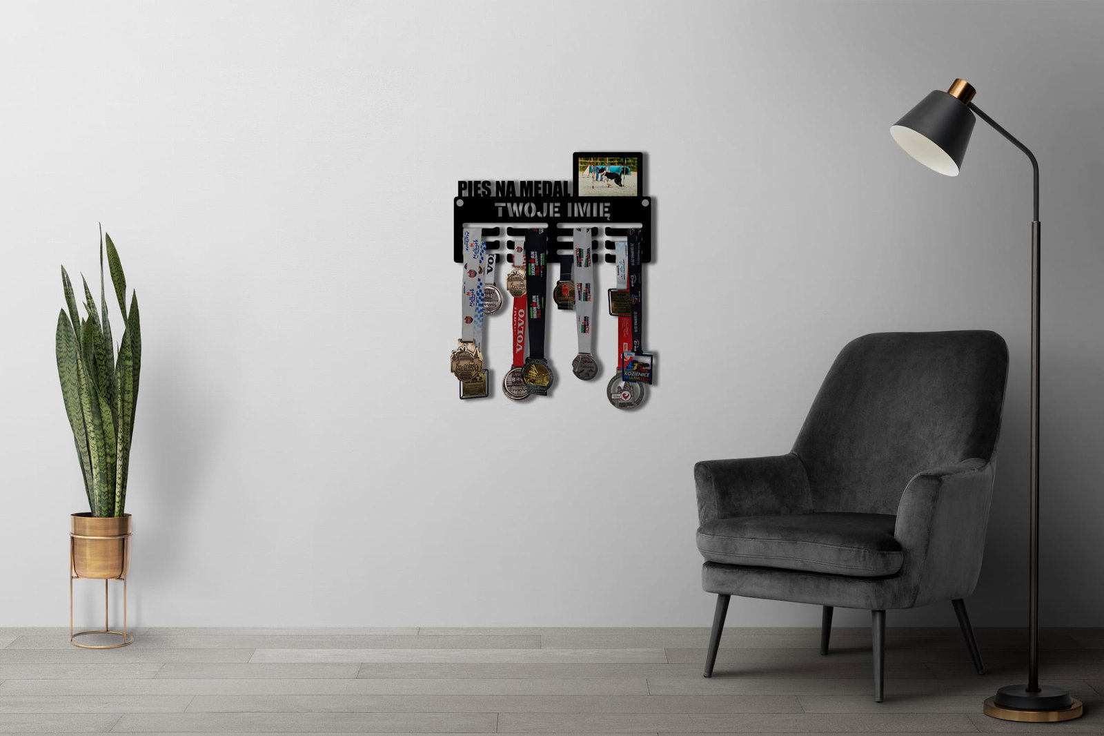 Wieszak na medale PIES NA MEDAL ramka na zdjęcie twoje imię dowolny tekst 376.3