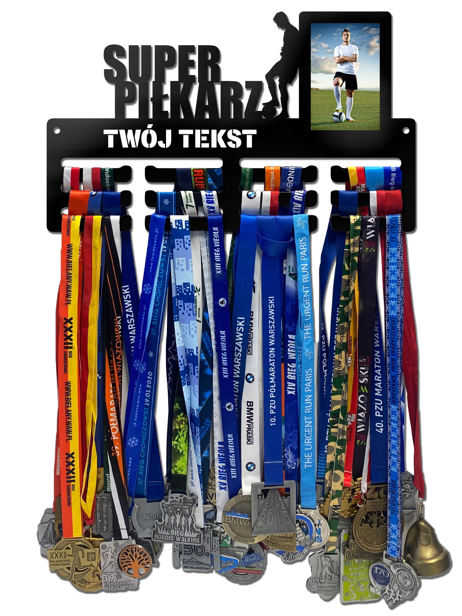 Wieszak na medale SUPER PIŁKARZ ramka na zdjęcie, dowolny tekst 402.3