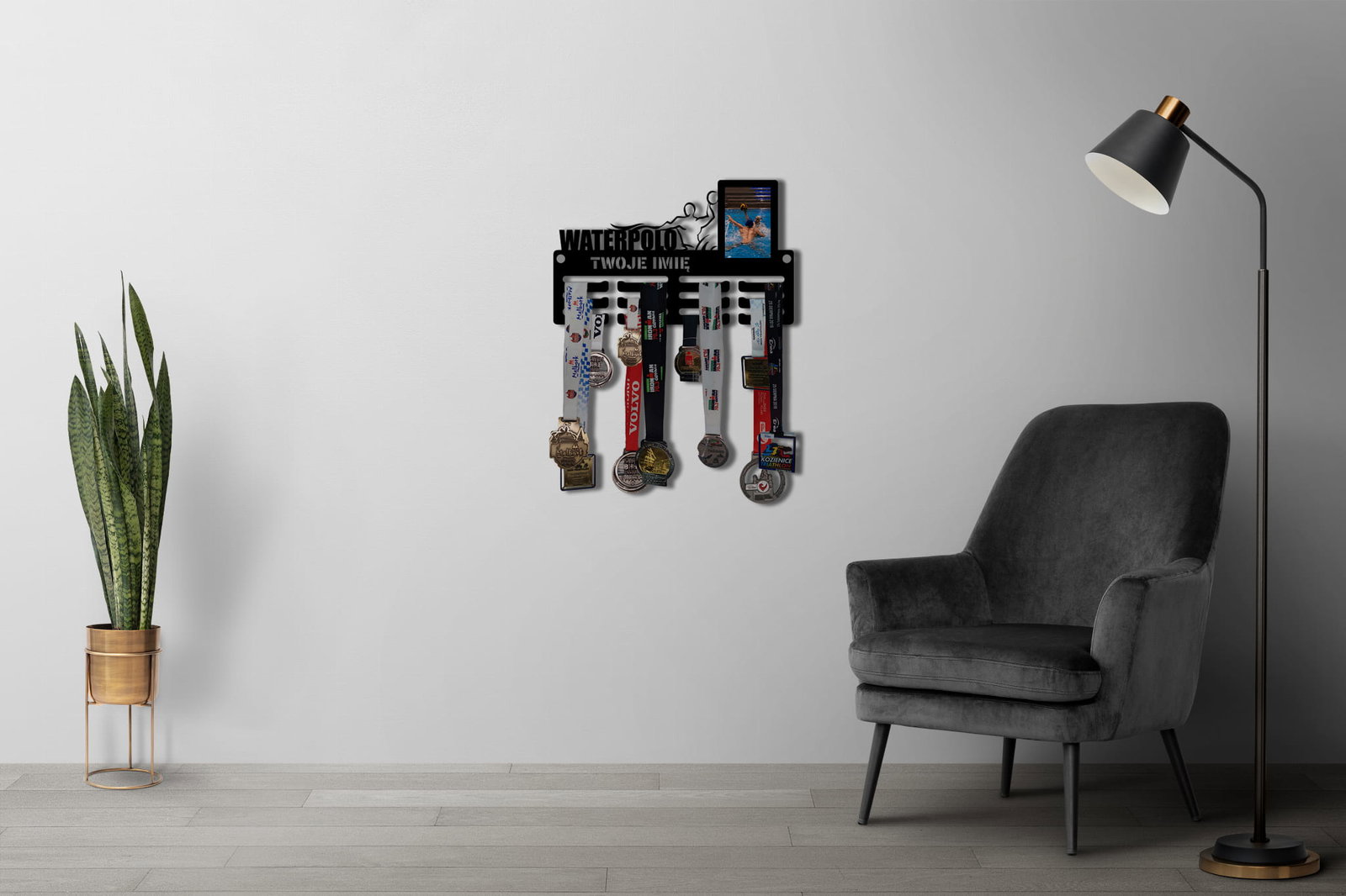 Wieszak na medale WATERPOLO ramka na zdjęcie twoje imię dowolny tekst 398.3