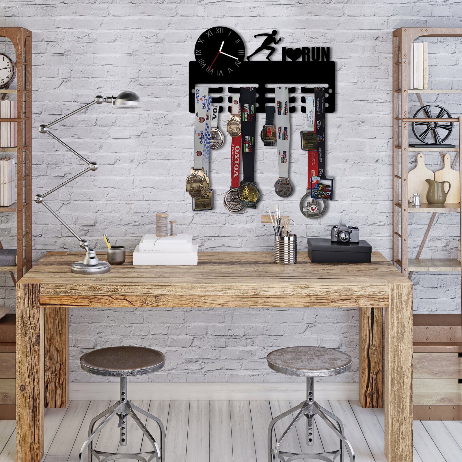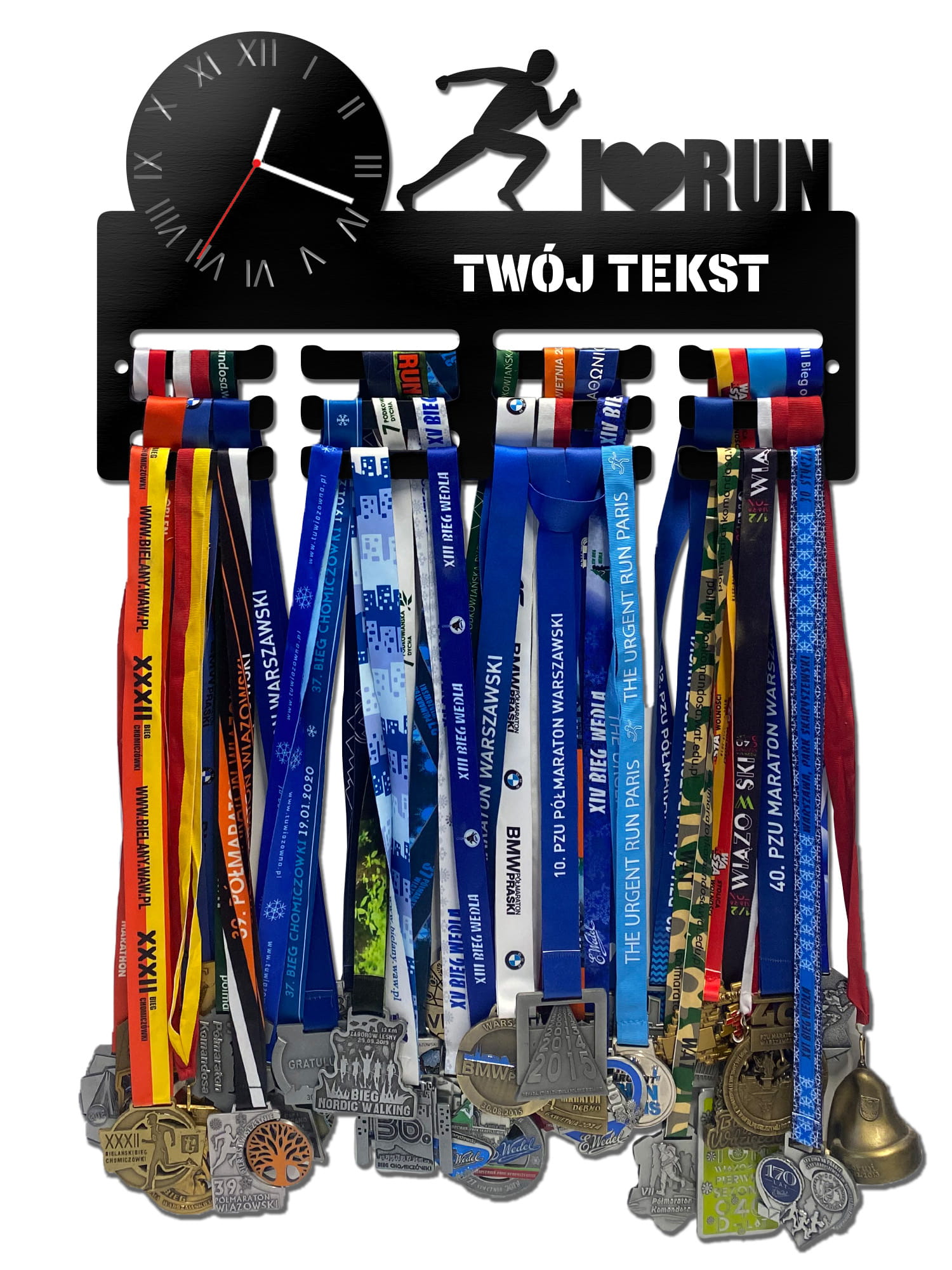 Wieszak na medale z zegarem I LOVE RUN twoje imię dowolny tekst 481.1