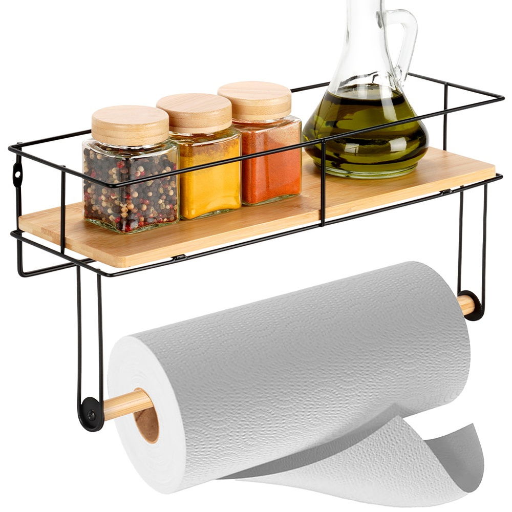 Wieszak na Ręcznik Papierowy Ścienny Metalowy Bambusowy Półka Kuchenna