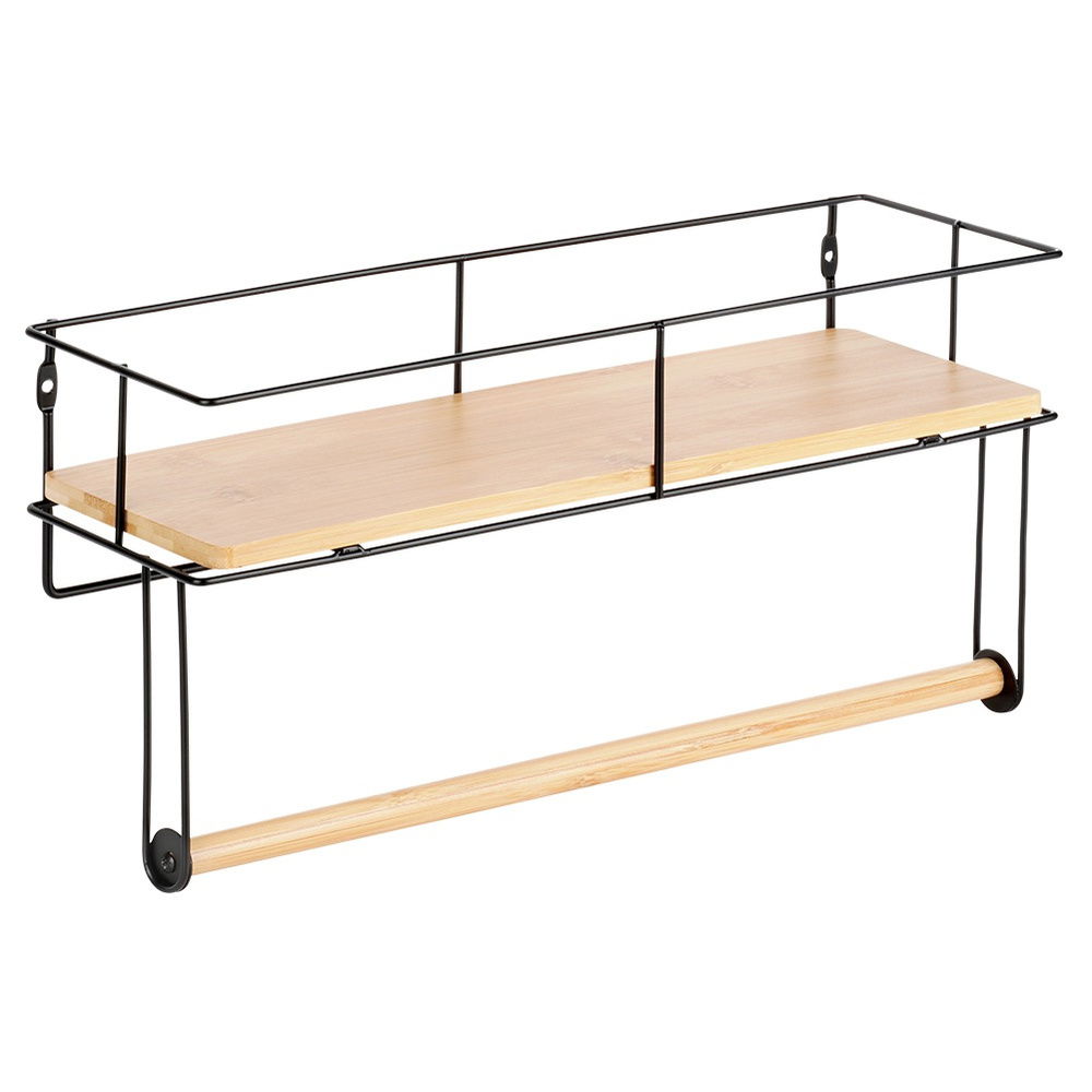 WIESZAK NA RĘCZNIK PAPIEROWY ŚCIENNY METALOWY BAMBUSOWY PÓŁKA KUCHENNA