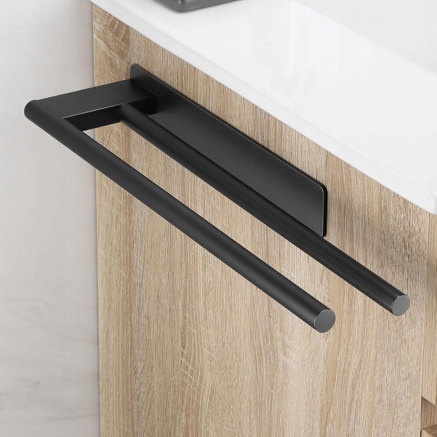 Wieszak na ręczniki OETAMS, bez wiercenia, podwójny, stal nierdzewna, czarny mat