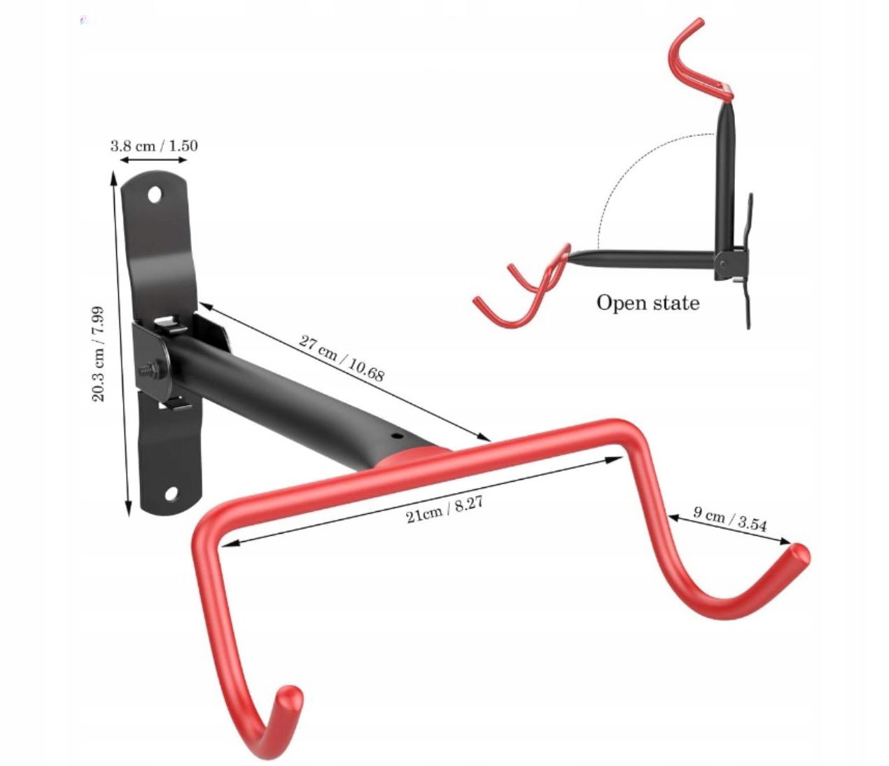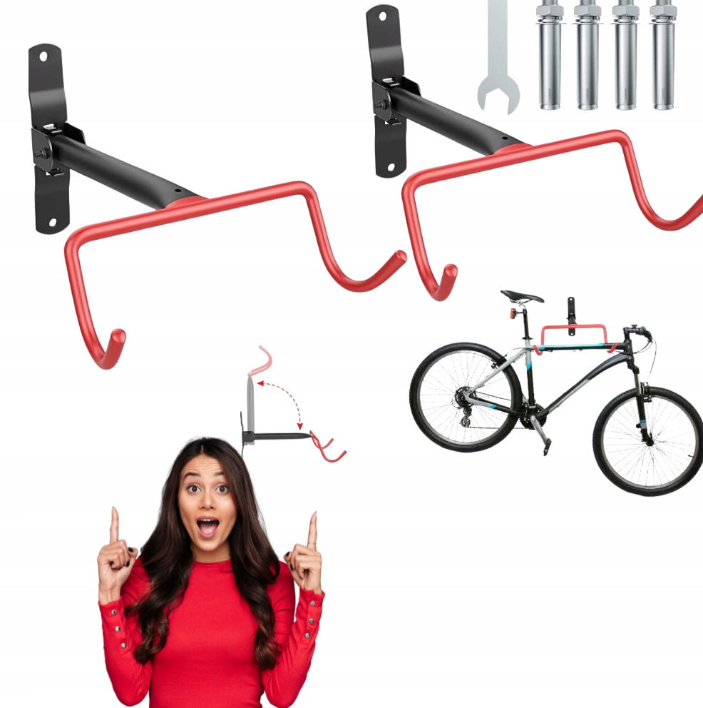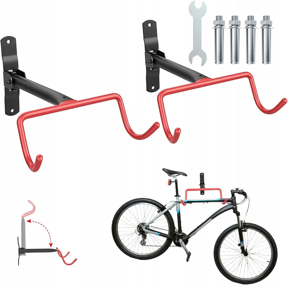 Wieszak na rower 2 sztuki wytrzymały, składany system do 29 kg czerwone