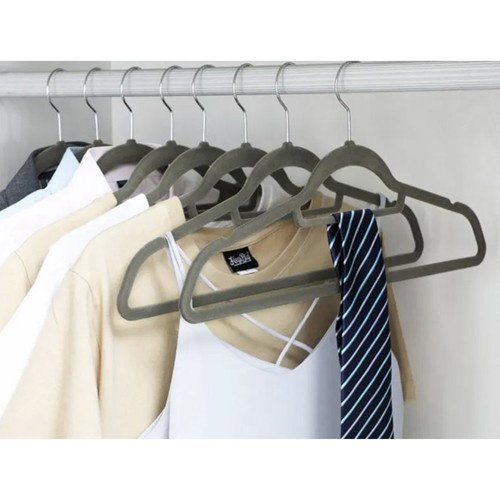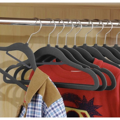 - WYSOKA JAKOŚĆ - wieszaki są wykonane z plastiku i w całości pokryte przyjemnym w dotyku welurem, dzięki czemu ubrania nie zsuwają się. Dodatkowo każdy wieszak posiada uchwyt na krawat, pasek czy apaszkę oraz ma wgłębienia na tasiemki.