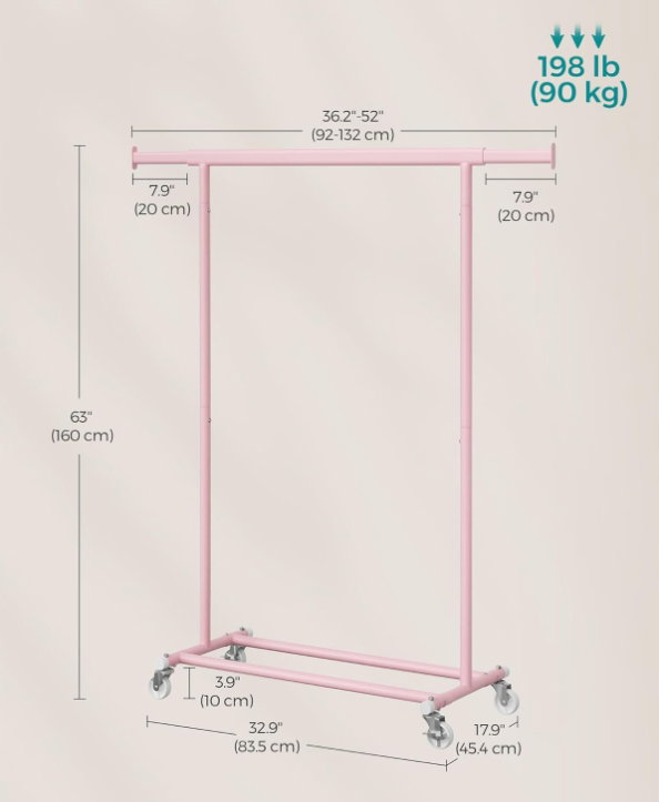 Wieszak na ubrania na kółkach 45 x (92-132) x 161,5 cm SONGMICS HSR013R01