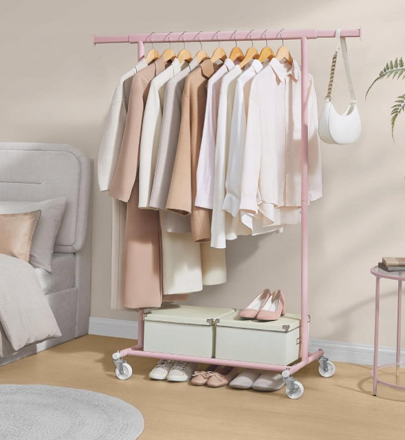 - ✴️[Łatwe przenoszenie i blokowanie] Ten wieszak na ubrania jest wyposażony w 4 kółka obrotowe 360°, z czego 2 z hamulcami, dzięki czemu można go łatwo przenieść z sypialni do garderoby i w razie potrzeby przechowywać w jednym miejscu