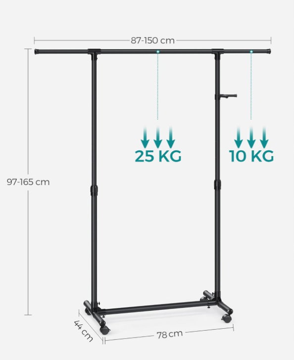 Wieszak na ubrania na kółkach, drążek na ubrania SONGMICS LLR001B01