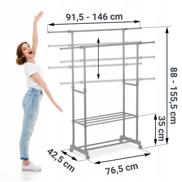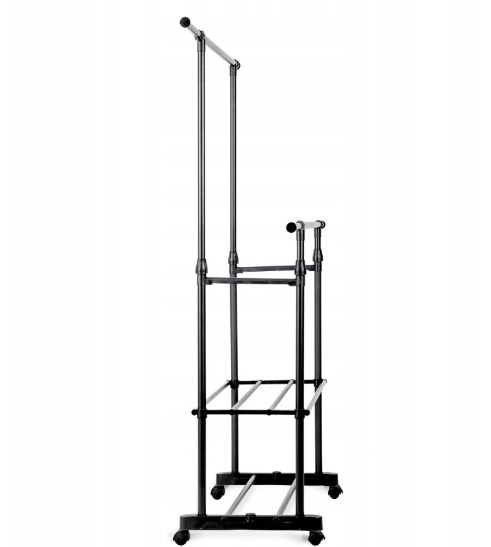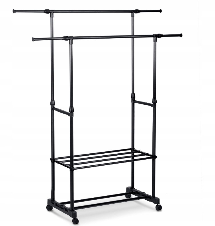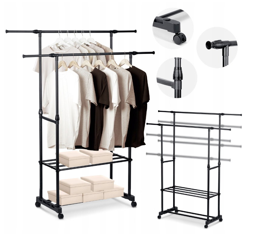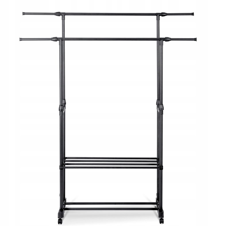 WIESZAK NA UBRANIA PODWÓJNY SZAFA STOJĄCA GARDEROBA NA KÓŁKACH 91,5-146CM