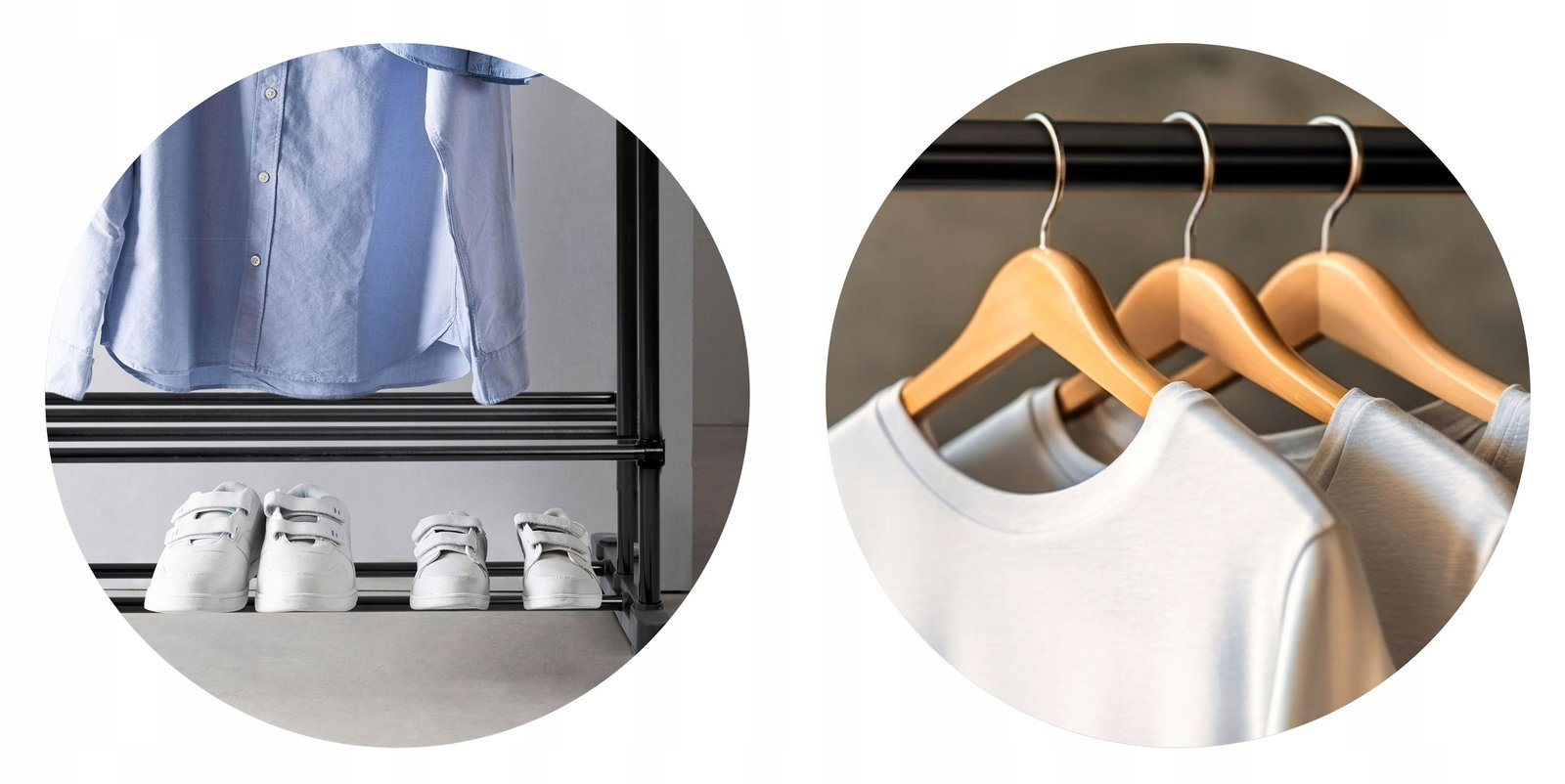 Wieszak sprawdzi się doskonale w przedpokoju, sypialni, biurze, a także w domowej garderobie. Dzięki regulowanej wysokości i dodatkowym półkom, będzie idealnym rozwiązaniem do przechowywania odzieży sezonowej, eleganckich ubrań czy codziennych akcesoriów.
