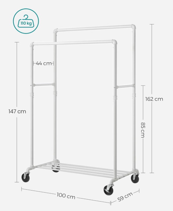 Wieszak na ubrania z 2 drążkami do 110 kg SONGMICS HSR060W01V1 POWYSTAWOWY