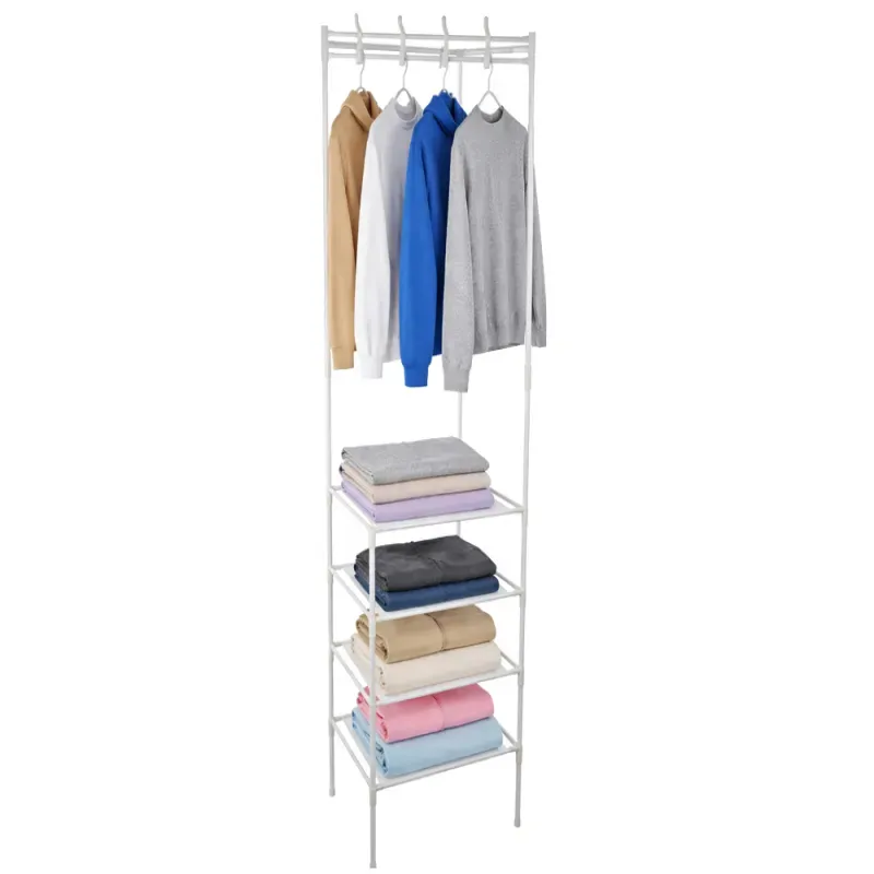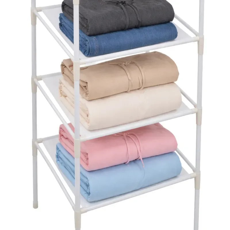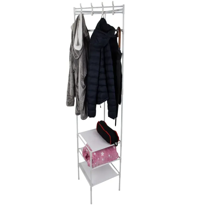 Praktyczny wieszak narożny na ubrania z trzema półkami to idealne rozwiązanie do małych i większych przestrzeni. Dzięki przemyślanej konstrukcji pozwala utrzymać porządek w przedpokoju, sypialni lub garderobie, a jednocześnie nie zajmuje wiele miejsca.