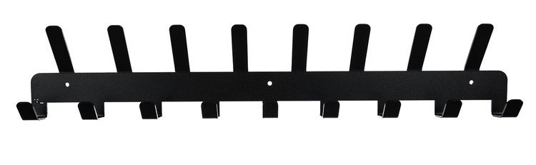 - SPECYFIKACJA - kolor: czarny; materiał: stal malowana proszkowo; 17 haczyków; wymiary: 9,1 x 48 x 2,8 cm; waga: 0,426kg; waga w opakowaniu: 0,511kg.