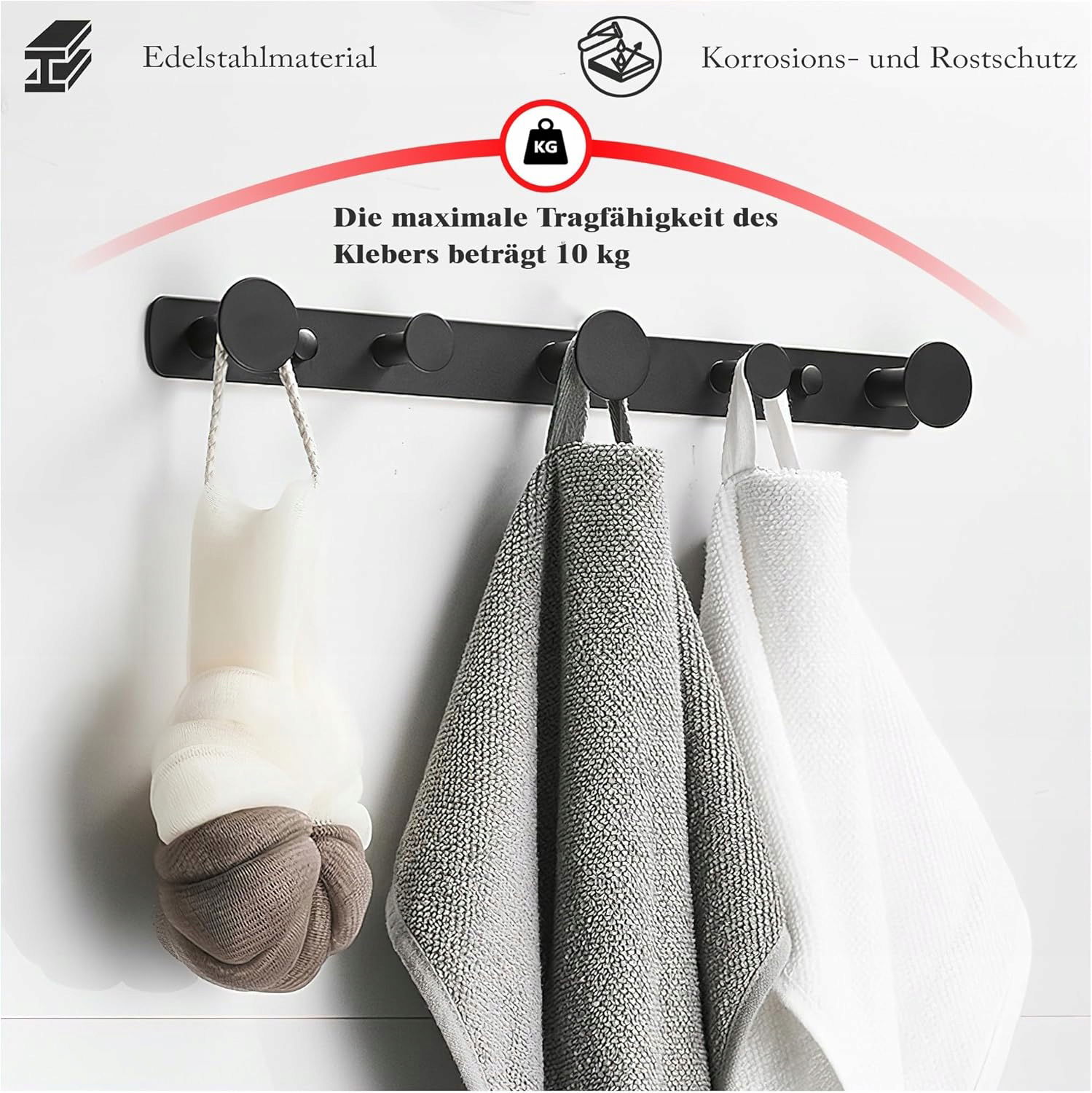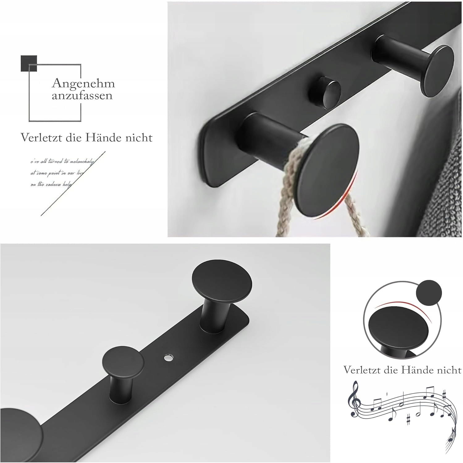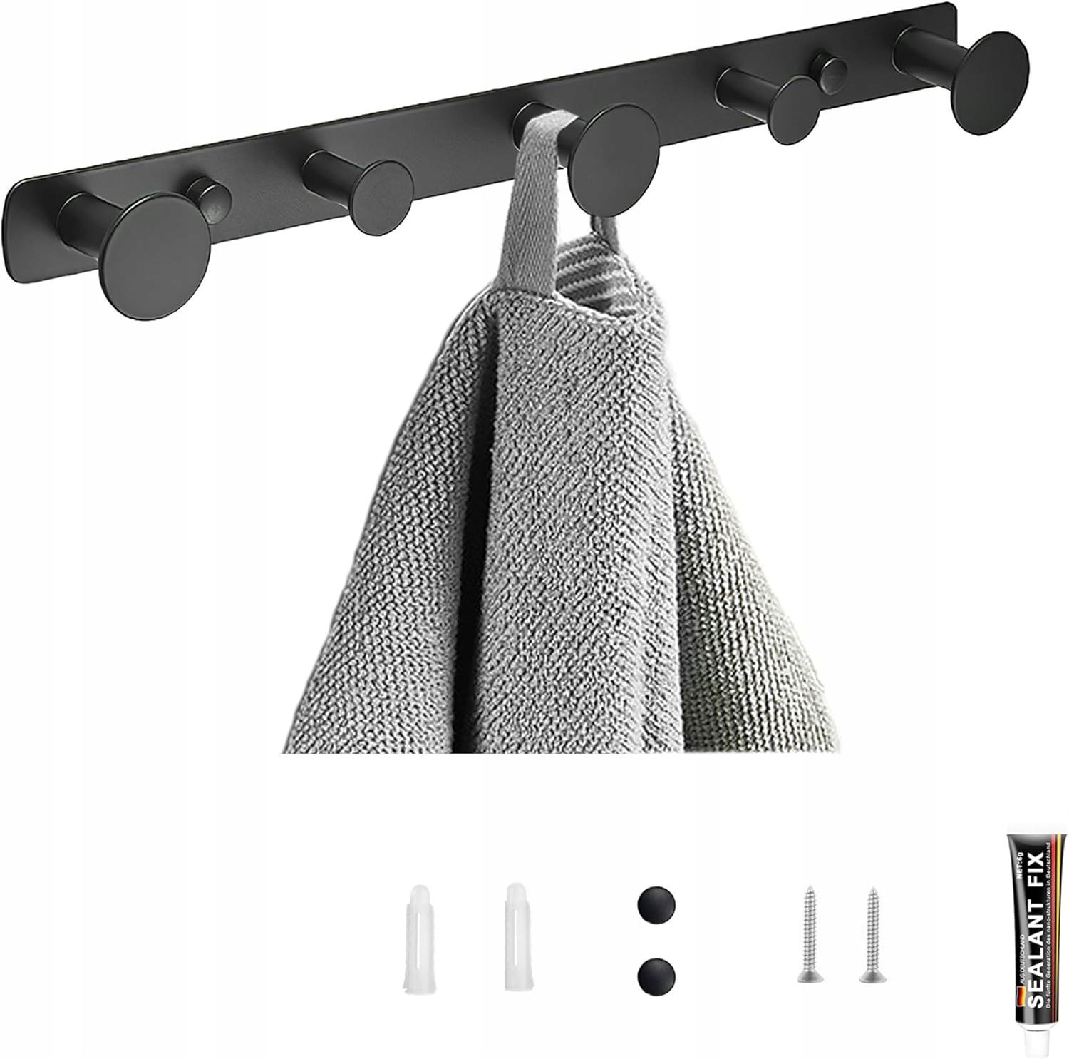 Wieszaki ścienne na ubrania z 5 haczykami, czarne matowe wieszaki na ubrania bez wiercenia, wieszaki na kurtki, okrągłe wieszaki ścienne ze stali nierdzewnej na kurtki, płaszcze, szaliki, torebki