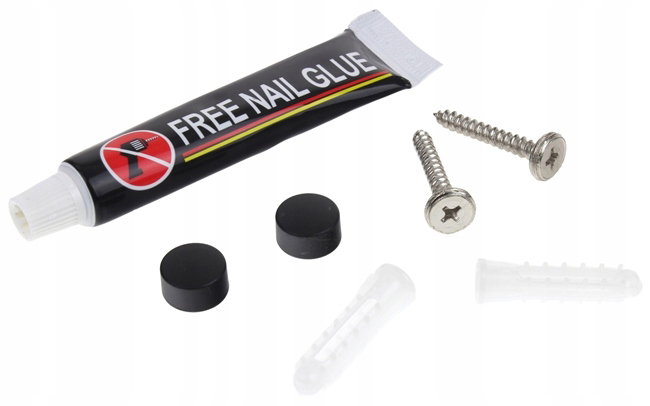 - Zestaw montażowy: śruby montażowe (wkręty z kołkami mocowane do betonu + maskownice) lub klej