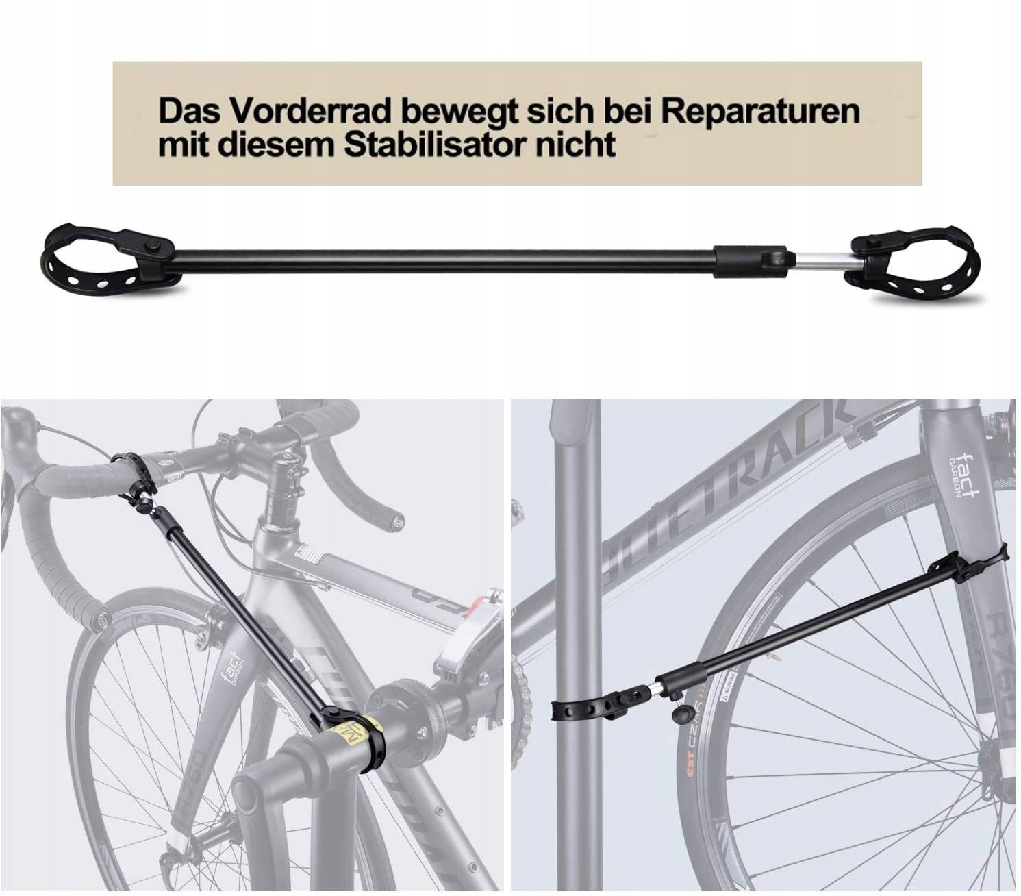 Przednie koło nie potrząsło – dzięki dołączonemu drążkowi mocującemu koło przednie nie potrząsa podczas naprawy. Długość drążka jest również regulowana.