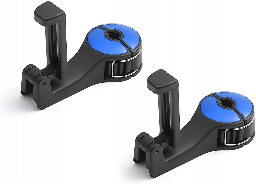 Zestaw 2 haczyków do toreb do przechowywania w samochodzie CGEAMDY, 2 w 1, haczyk na zagłówek fotela samochodowego z uchwytem na telefon, obrotowy o 360°, ukryty haczyk na torby z zakupami, torebki, telefony (niebieski)