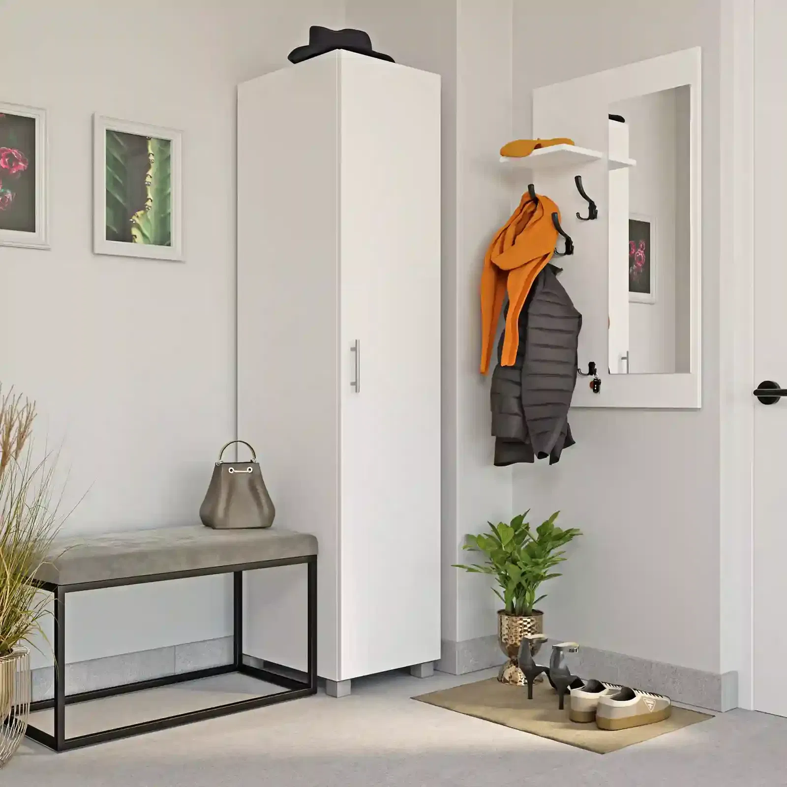 Funkcjonalna półka – idealna do przechowywania czapek, szalików czy elementów dekoracyjnych, pomagając w utrzymaniu porządku w przedpokoju.