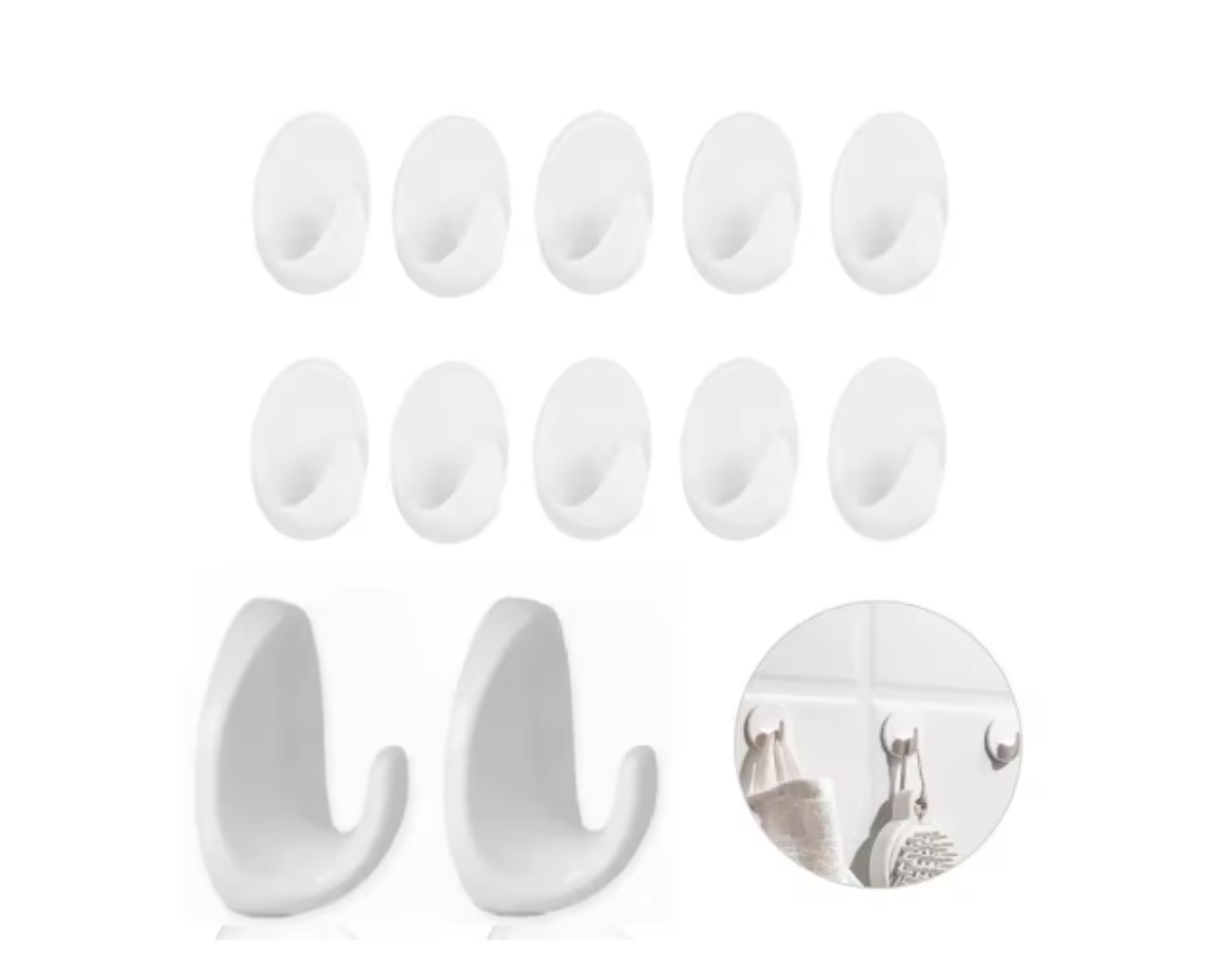 Cechy produktu: ✅ Zestaw 6 sztuk – więcej haczyków dla lepszej organizacji ✅ Taśma samoprzylepna – szybki montaż bez wiercenia ✅ Odporne na wilgoć – idealne do łazienki i kuchni ✅ Uniwersalne zastosowanie – sprawdzą się w różnych pomieszczeniach ✅ Minimalistyczny biały design – pasuje do każdej aranżacji