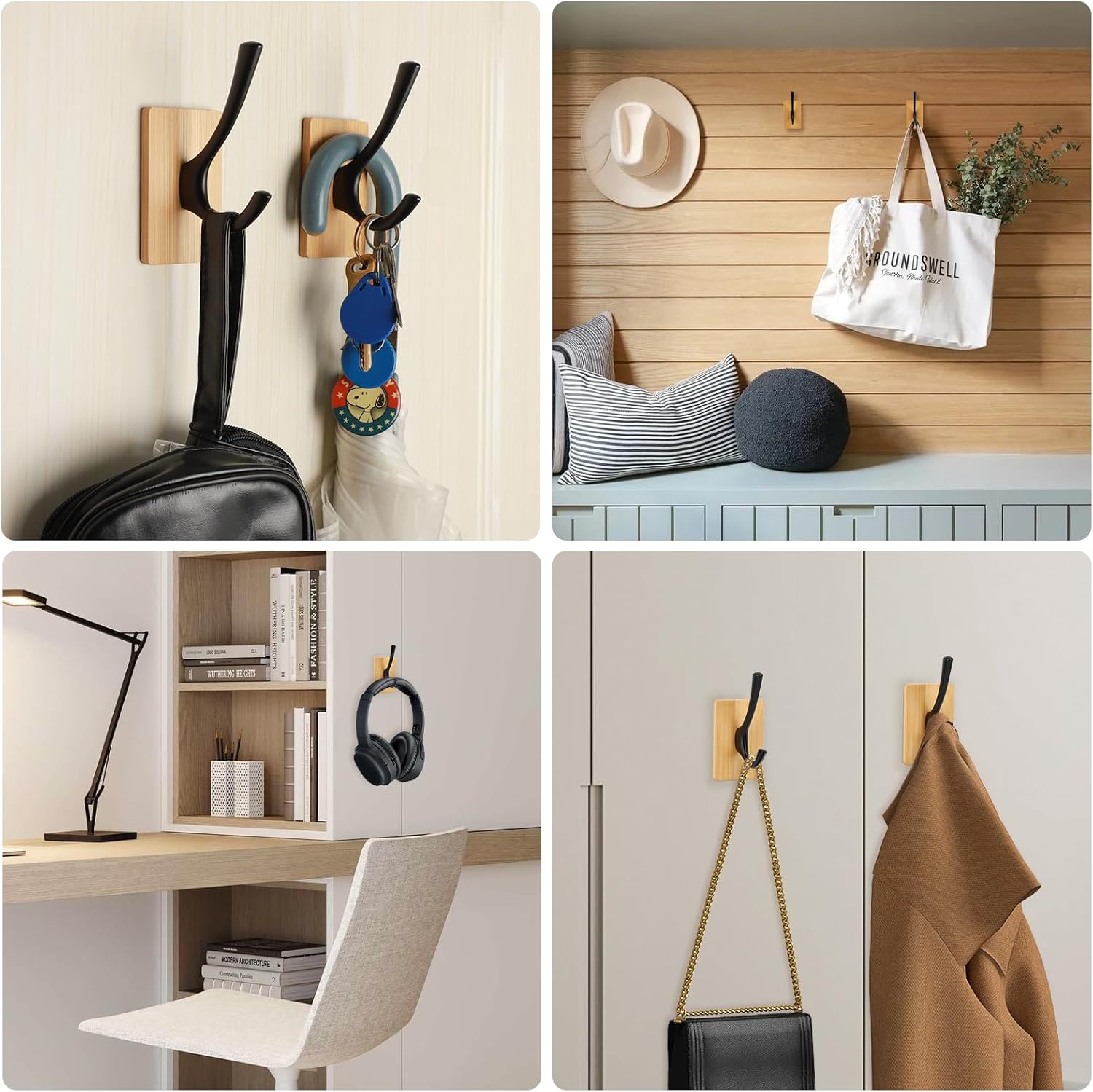 Segus Haczyki samoprzylepne, 4 sztuki bambusowych haczyków, bardzo mocne, haczyki na ręczniki, haczyki na ręczniki, haczyki ścienne, haczyki samoprzylepne do kurtek, szalików, kapelusza