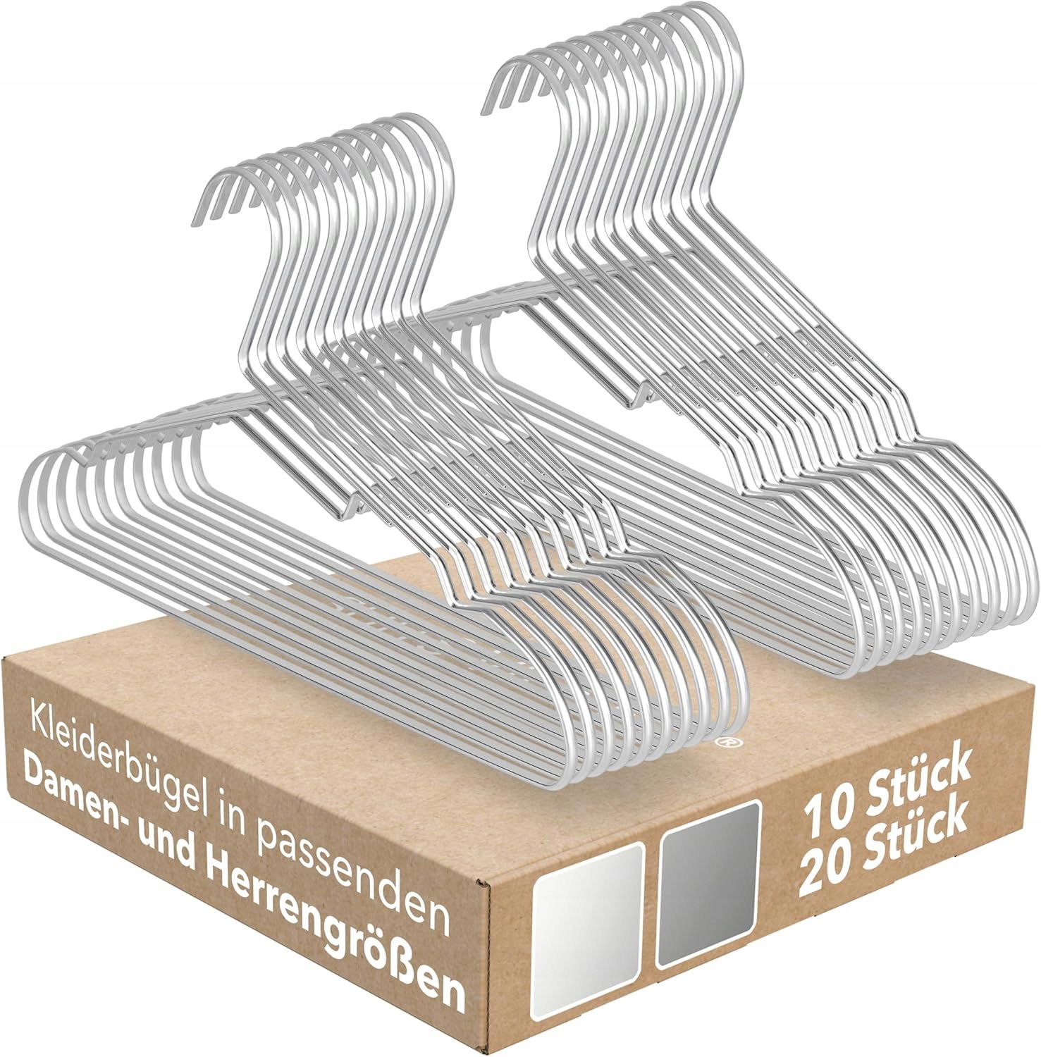 Wieszaki na ubrania metalowe srebrne 10 szt | Smukłe | Ergonomiczne | Antyodkształceniowe