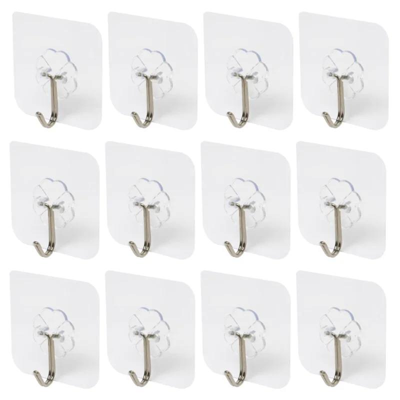 Zestaw 12 wieszaków samoprzylepnych – Przezroczyste PVC