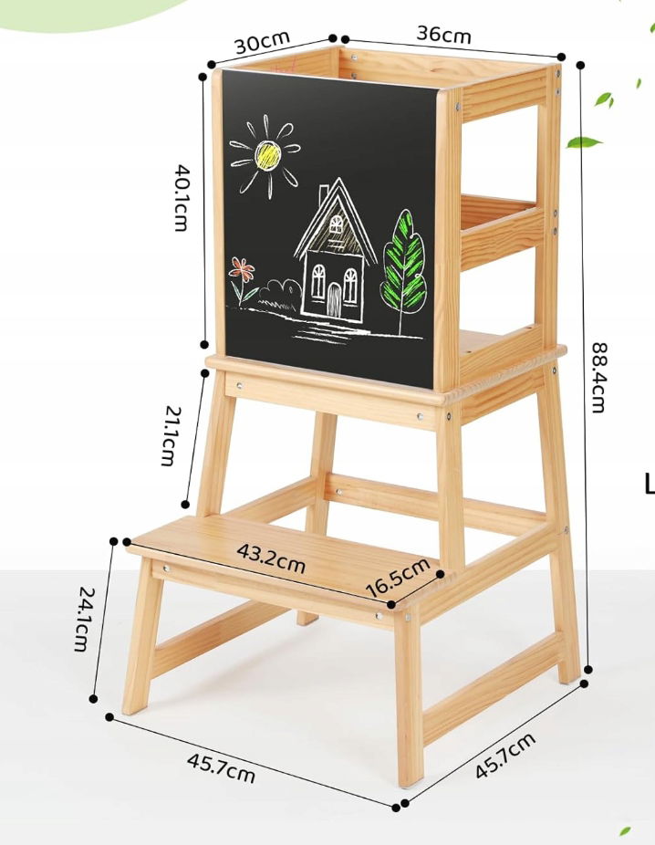 Wieża edukacyjna dla dzieci, krzesełko dziecięce z tablicą i barierką