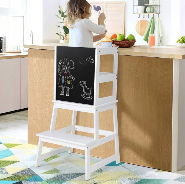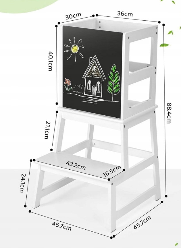 Wieża edukacyjna dla dzieci, krzesełko dziecięce z tablicą POWYSTAWOWY