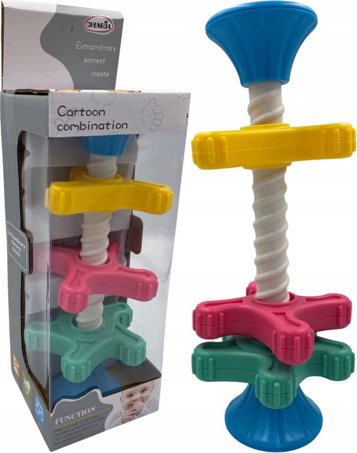 Sensoryczna wieża to świetna propozycja dla ciekawskiego malucha. Wieża posiada ruchome elementy, które z pewnością zaciekawią i zajmą wiele czasu Twojemu dziecku. Zabawka została wykonana z wytrzymałego oraz bezpiecznego dla dziecka tworzywa sztucznego umożliwiającego zabawę również w wodzie podczas kąpieli.