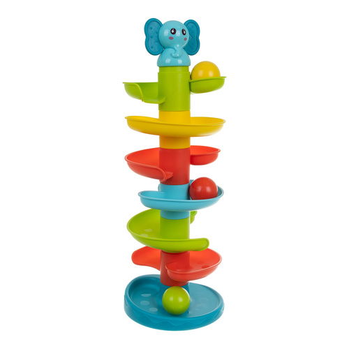 - zabawa, która wciąga na długo – obserwowanie jak kolorowe piłeczki grzechocząc toczą się po spiralnych torach, daje dziecku mnóstwo radości i nie pozwala się nudzić