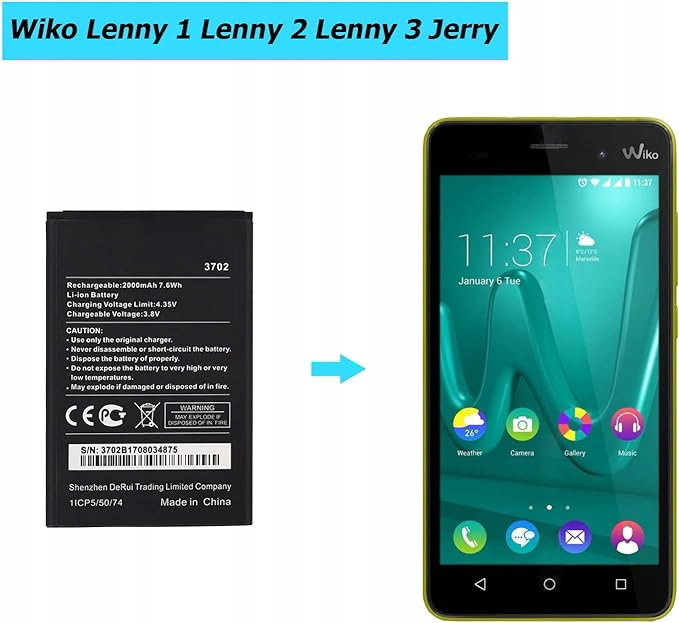 Ta bateria została zaprojektowana specjalnie do Wiko Lenny 1 Lenny 2 Lenny 3 Jerry , może zastąpić starą baterię, Tech-Skills mogą być stosowane przy wymianie baterii.