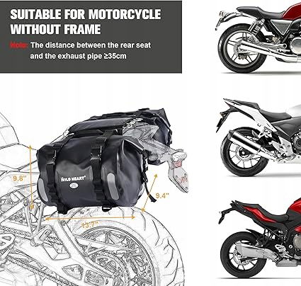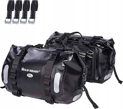 SUPERWODOODPORNOŚĆ: Nadaje się głównie do motocykli bez ramy bocznej i niewygodnych w montażu bocznych toreb. Wykorzystuje bezszwowe spawanie o wysokiej częstotliwości i technologię wodoodporności. Stopień wodoodporności to IPX6 (wodoodporność na długotrwałe ulewne deszcze), nadaje się do większości modeli motocykli, motocykli, jazdy konnej i innych okazji. Pojemność: 40 l (20 * 2) wys.: 25 cm szer.: 24 cm dł.: 36 cm (po zwinięciu), można włożyć przedmioty takie jak kaski motocyklowe