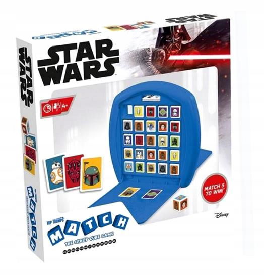 Wybierasz ciemną czy jasną stronę mocy? Wszystkie ulubione postacie najmłodszych fanów Star Wars znalazły się na pionowej planszy TOP TRUMPS MATCH! Wylosuj bohatera i spróbuj ułożyć jednakowy rząd w linii pionowej, poziomej lub na ukos. Uwaga na spadające kostki! Przeciwnicy nie śpią. Niech moc będzie z Tobą!