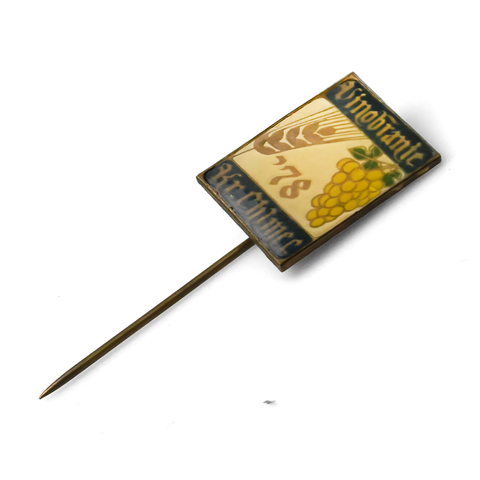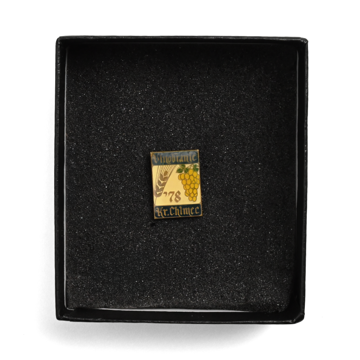 Unikalna Kolekcjonerska Przypinka z Festiwalu Winobrania – Královský Chlumec Odkryj wyjątkową pamiątkę z przeszłości! Ta pięknie zachowana emaliowana przypinka pochodzi z festiwalu winobrania w Královským Chlumcu, mieście o długiej tradycji uprawy winorośli. Prostokątna forma, złocisty odcień oraz misternie wykonane detale – kiść winogron oraz kłos zboża – nadają jej wyjątkowy charakter. Przypinka posiada klasyczny stick pin – cienką igłę bez zapięcia, typową dla czeskich i słowackich pamiątek z lat 50.–80. XX wieku. Napisy „Vinobraní“ oraz „Kr. Chlumec“ wskazują na związek z lokalnym świętem wina, podczas którego mieszkańcy i goście świętowali udane zbiory. To doskonały dodatek do kolekcji historycznych przypinek, pamiątek związanych z winiarstwem lub festiwalami. Dzięki solidnej konstrukcji i eleganckiemu wzornictwu będzie świetnym prezentem dla miłośników win, historii i regionalnych tradycji Europy Środkowej.