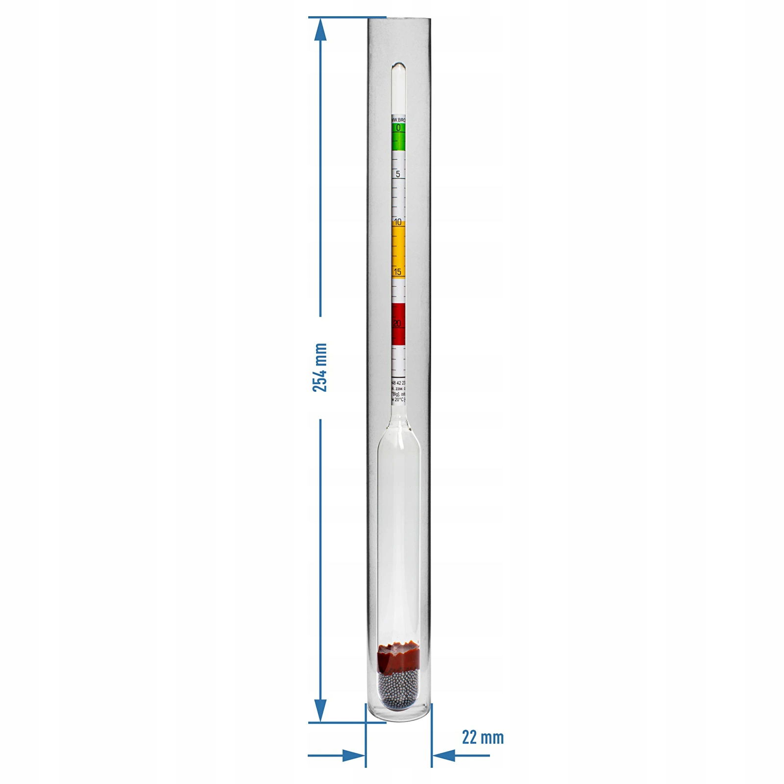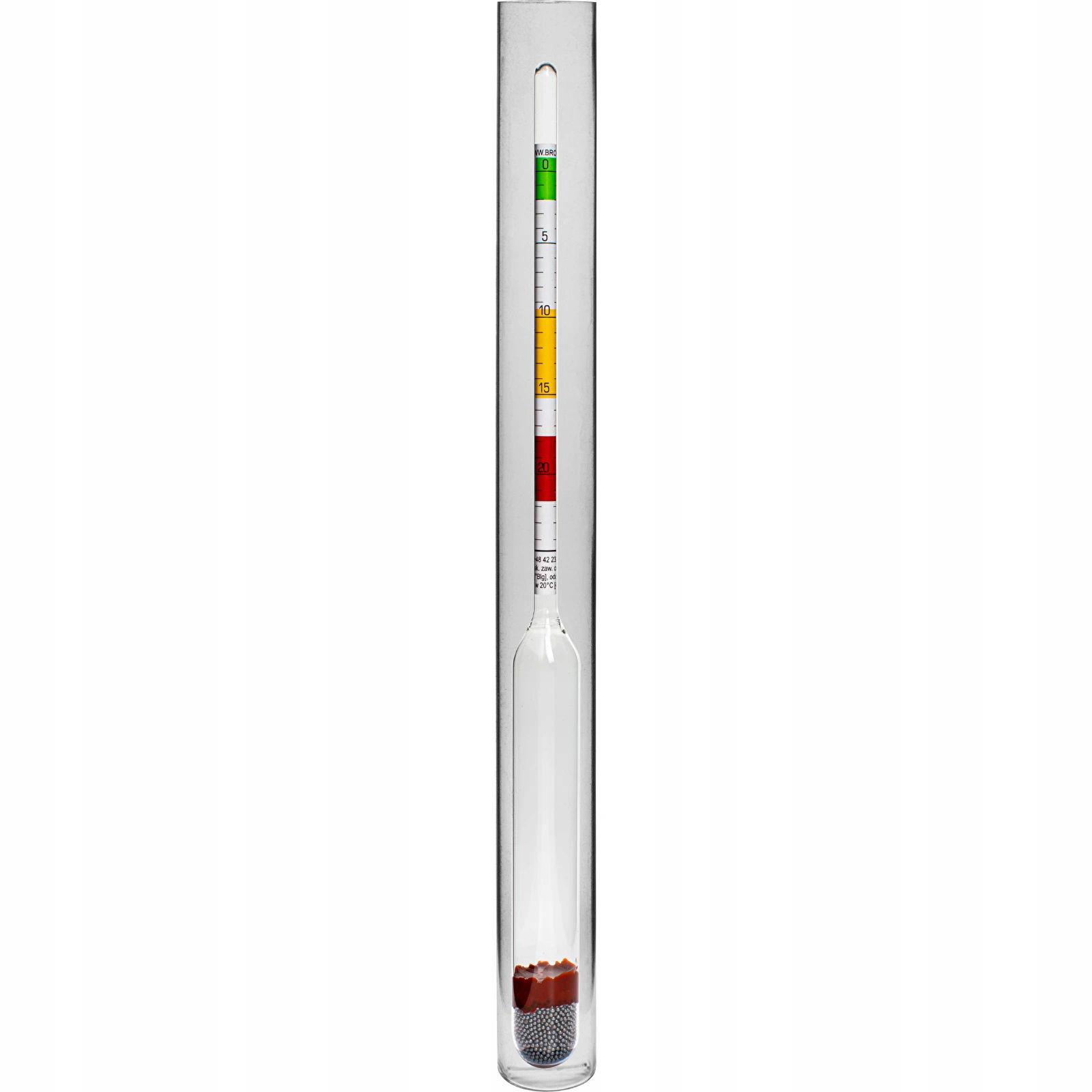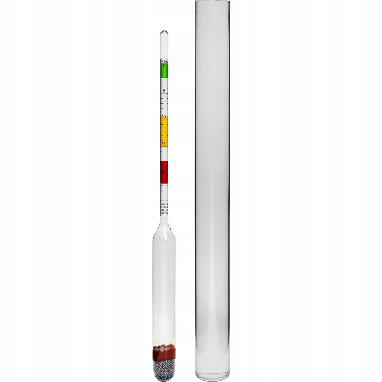 W skład zestawu wchodzi: - plastikowa probówka - korek do probówki - areometr