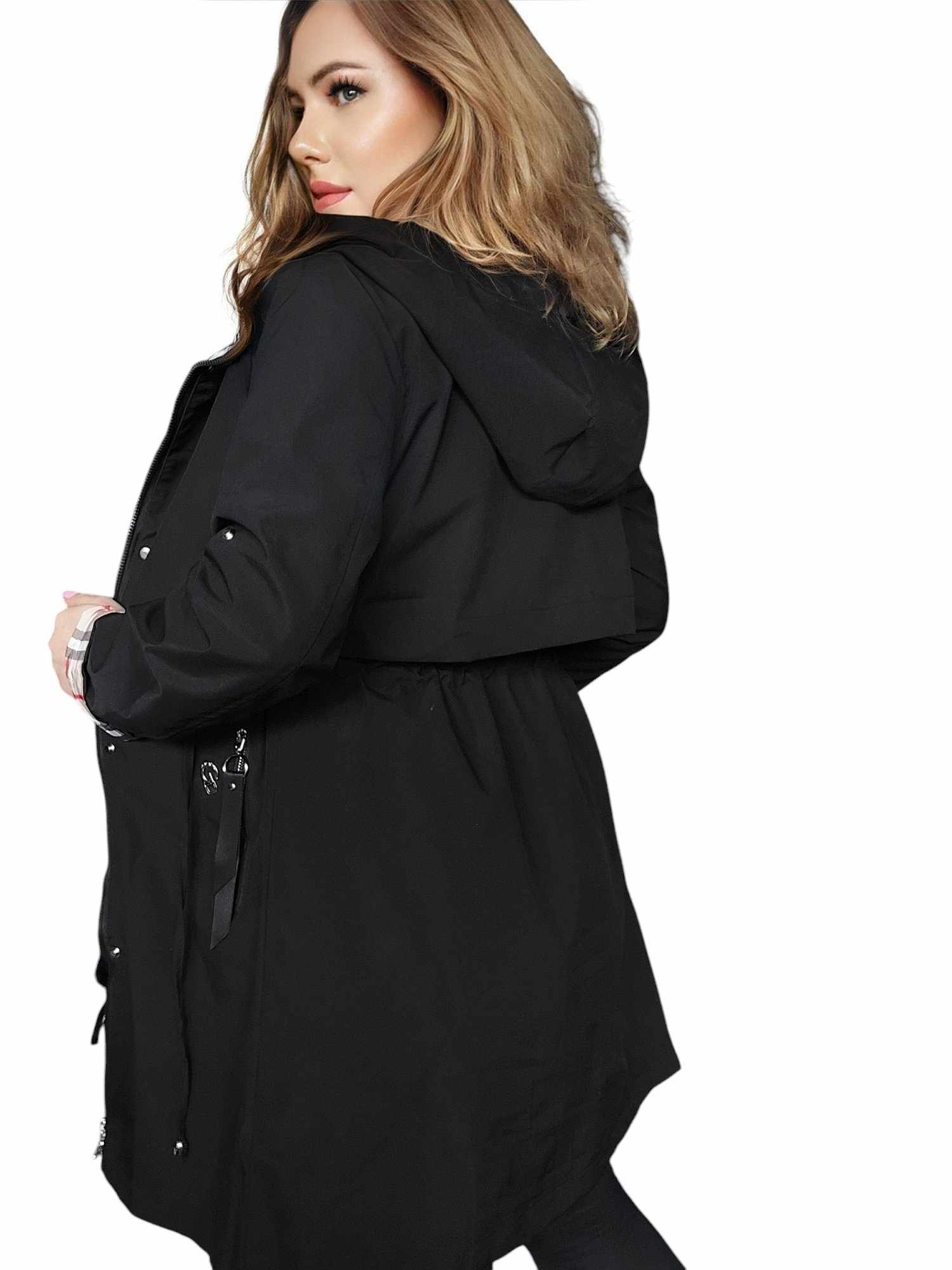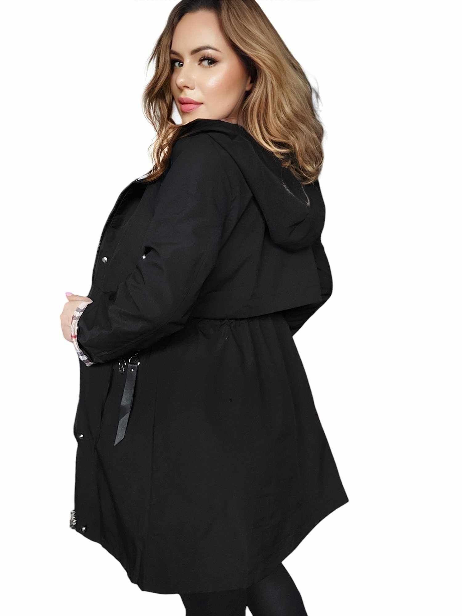 wiosenny czarny Płaszcz damski przejściowy trencz kurtka damska wiosenna XL 42