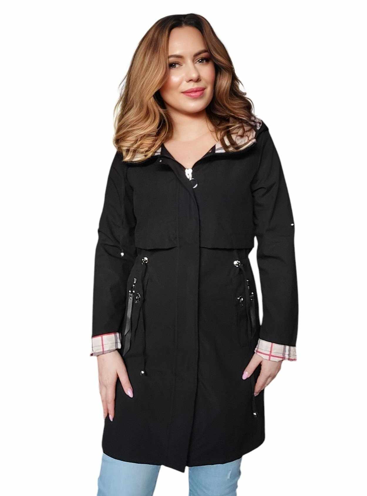 wiosenny czarny Płaszcz damski przejściowy trencz kurtka damska wiosenna XXL 44
