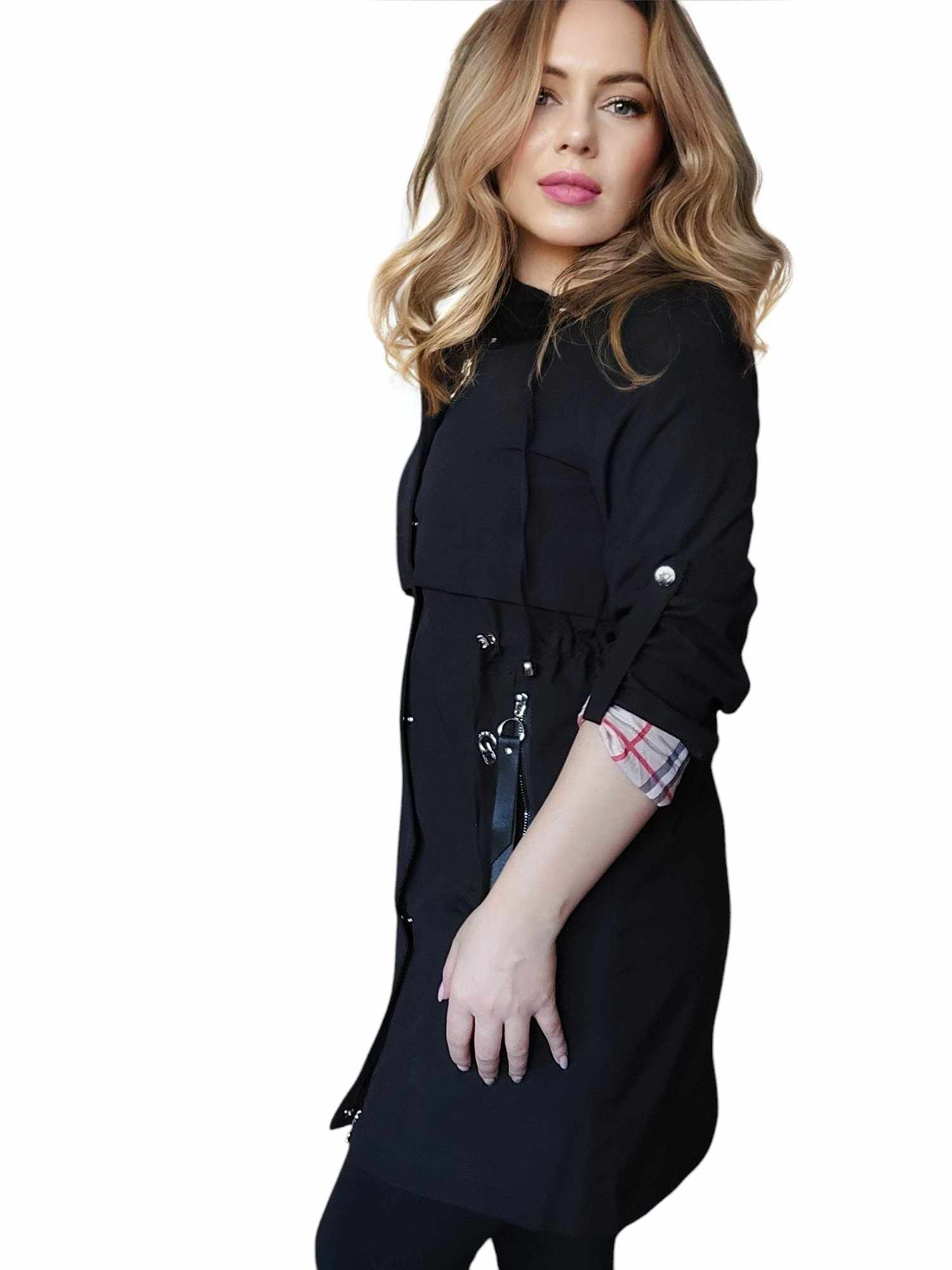 wiosenny czarny Płaszcz damski przejściowy trencz kurtka damska S 36 +KOMIN
