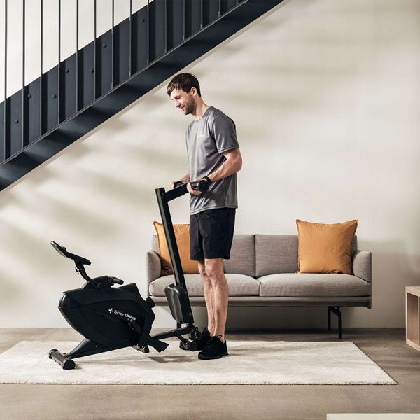 - Wioślarz można złożyć w kilku krokach, a za pomocą kółek transportowych można go szybko przesunąć i przechowywać, oszczędzając miejsce.