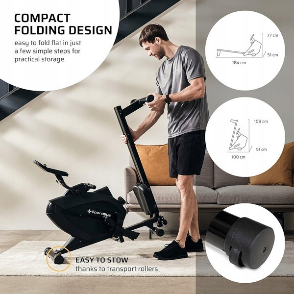 Wioślarz magnetyczny, składany Ergometr cichy SportPlus SP-MR-1200-B/B (N)