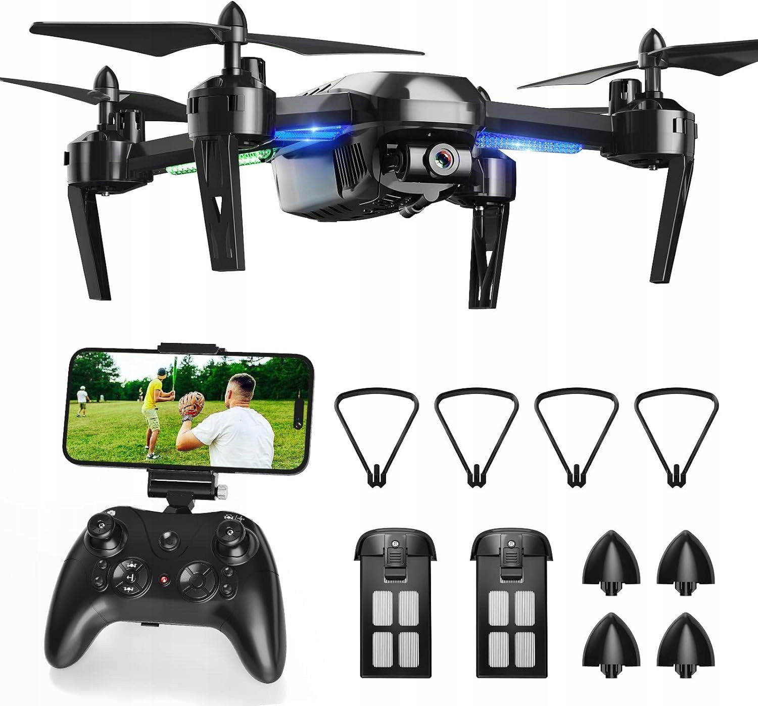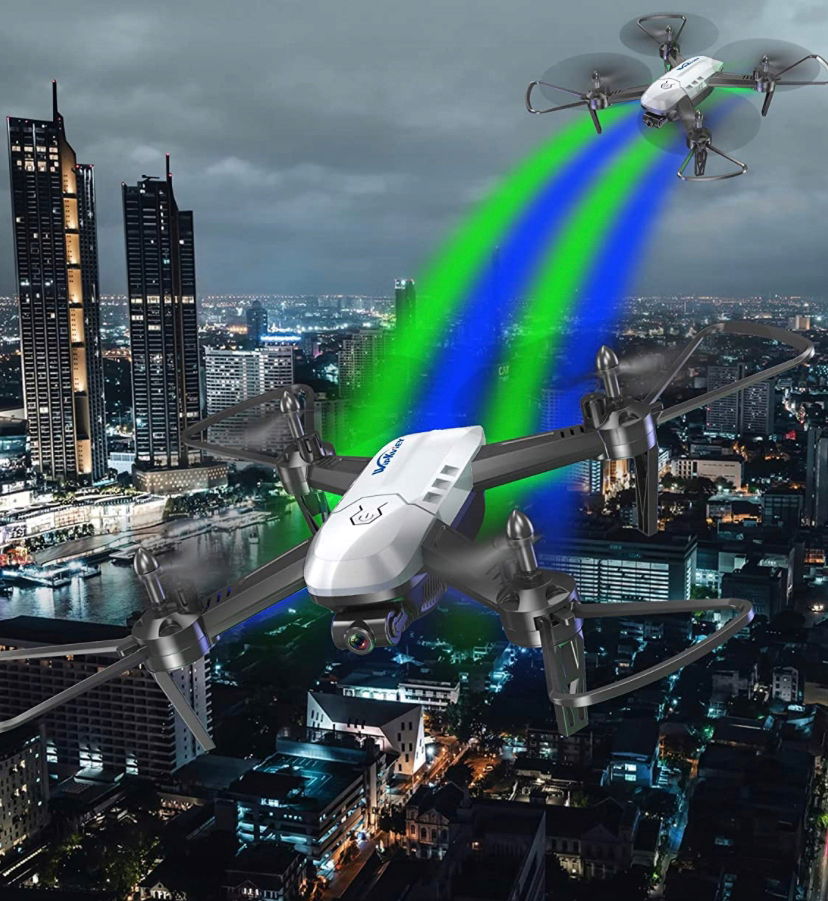Dron Wipkviey T6, drony FPV z kamerą 1080P HD, zdalnie sterowany quadcopter z 2,4G WiFi do transportu wideo na żywo, utrzymywanie wysokości, tryb bezgłowy, dla dorosłych, początkujących, dzieci, 2 baterie, 26-30 minut lotu