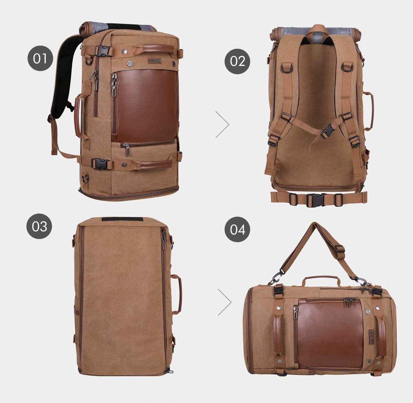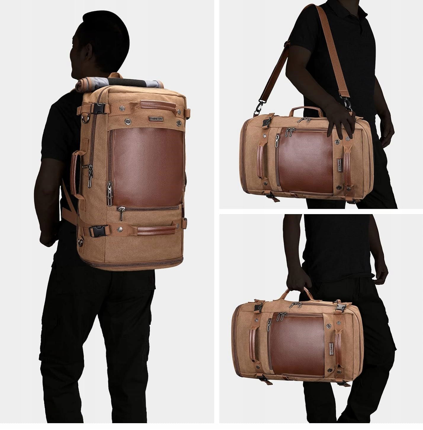 Wybierz wielofunkcyjny plecak podróżny WITZMAN, który łączy styl vintage z nowoczesną funkcjonalnością! Ten duży, brązowy plecak o wymiarach 53 cm (21 cali) to idealne rozwiązanie jako bagaż podręczny, torba sportowa czy plecak na co dzień. Wykonany z wysokiej jakości płótna i skóry PU, pomieści laptopa 17” i z łatwością dostosuje się do Twoich potrzeb dzięki możliwości transformacji w torbę marynarską, na ramię lub crossbody.