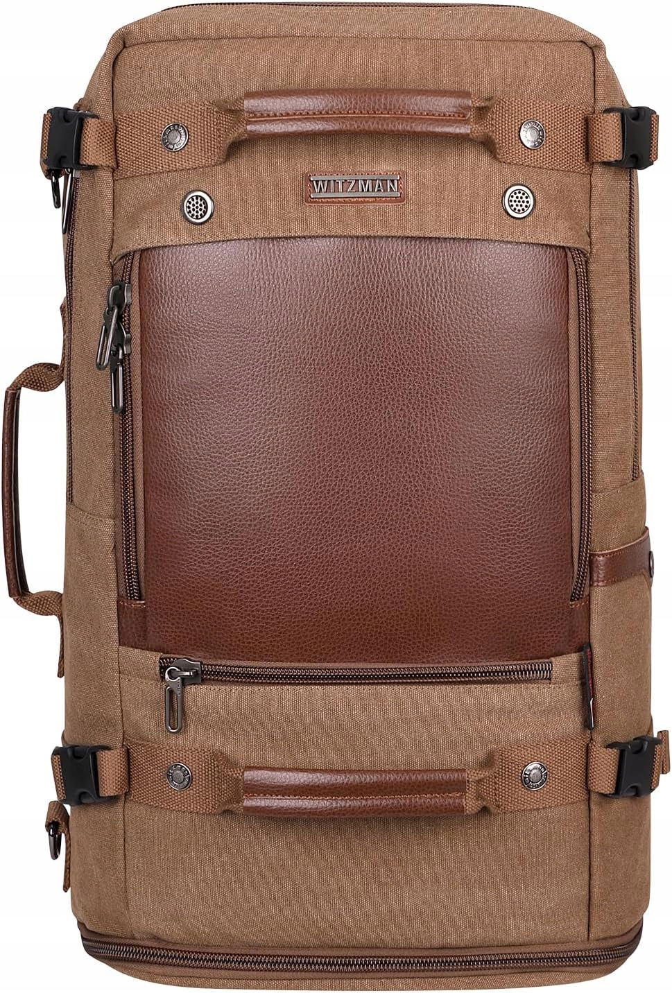 WITZMAN Płócienny plecak podróżny dla mężczyzn bagaż podręczny plecak duża torba sportowa pasuje do laptopa 17'', Duży / brązowy, 53 cm / 21 inch �✈️