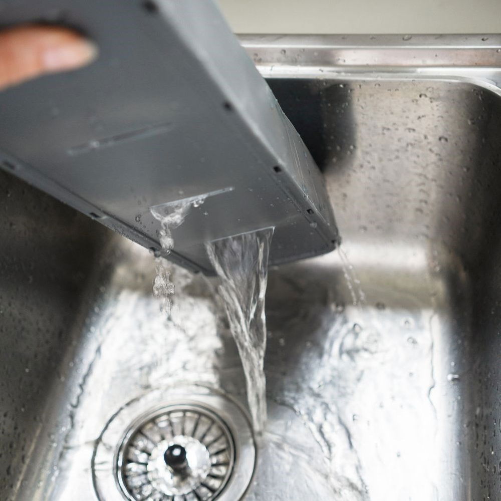 WYTRZYMAŁY - Wykonany z wytrzymałego tworzywa w kolorze szarym.