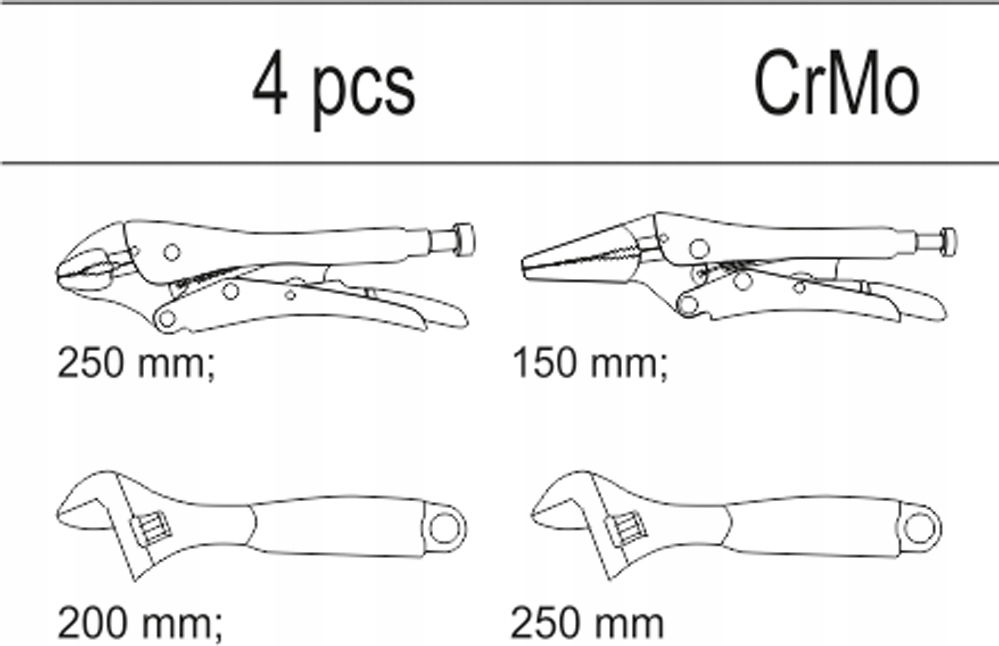 - wkład - szczypce samozaciskowe YT-2451 długość 250 mm - szczypce samozaciskowe YT-2459 długość 150 mm - klucz samonastawny YT-2072 długość 200 mm - klucz samonastawny YT-2073 długość 250 mm