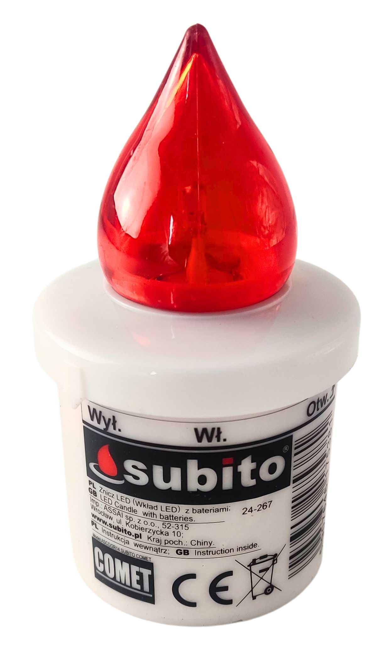 Wkład LED do zniczy kapliczek SUBITO Comet czerwony do 2400h 1szt.