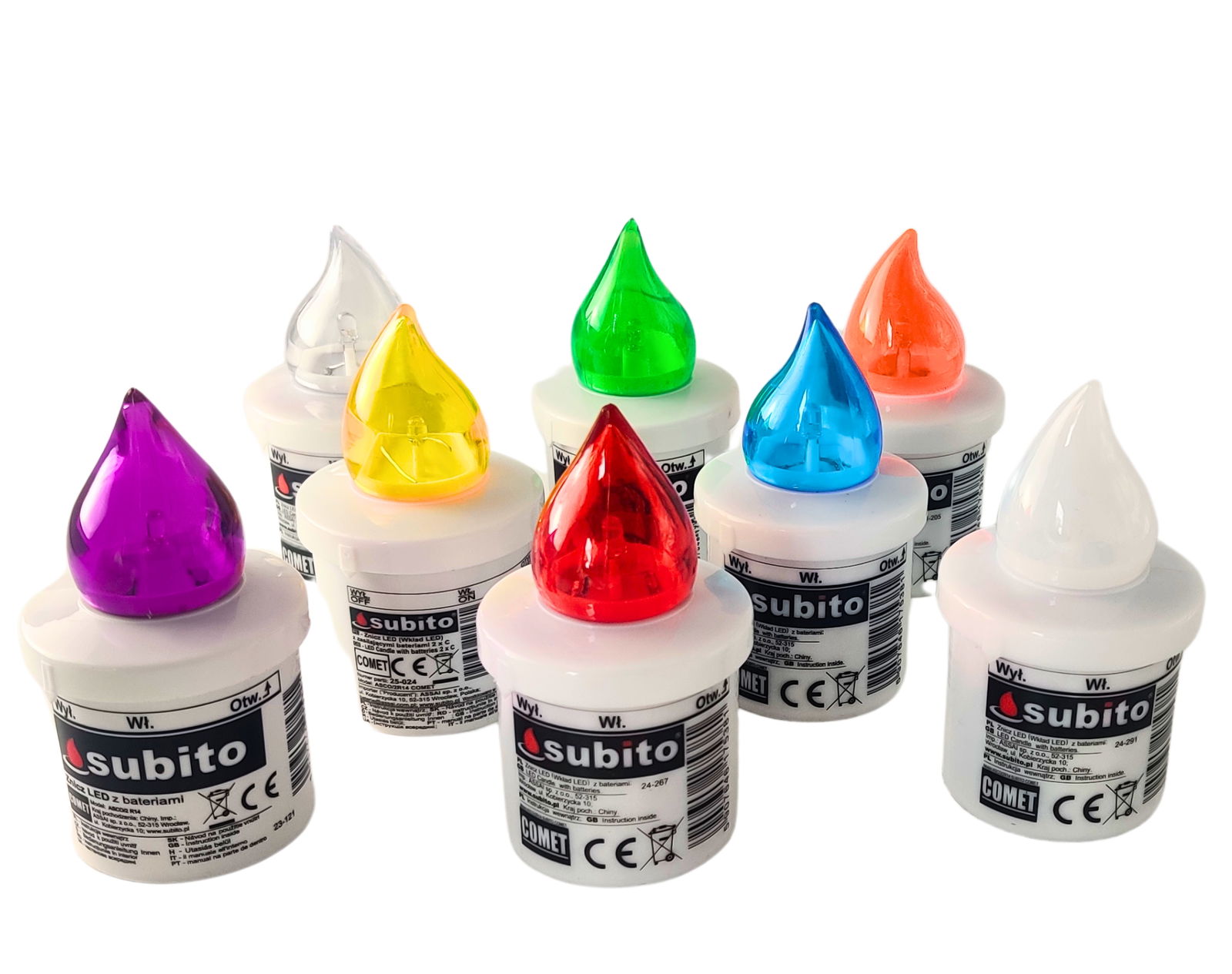Klasyczny wkład LED do zniczy marki Subito zasilany bateriami R14. Pasuje do większości zniczy szklanych, plastikowych bądź różnego rodzaju kapliczek i latarenek. Wkład LED daje przyjemne światło, a bogaty wybór kolorów umożliwia stworzenie ciekawej iluminacji.